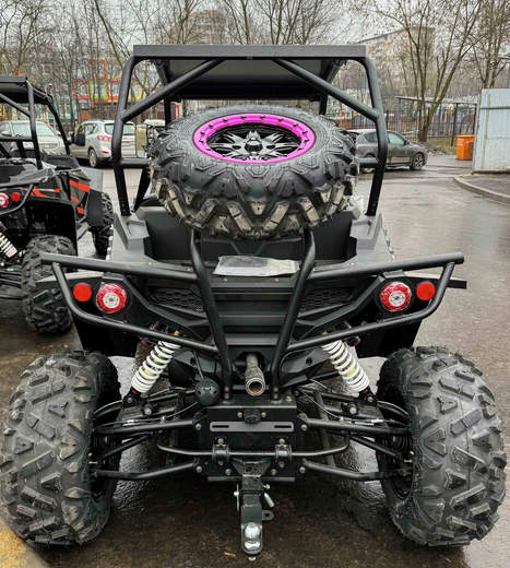 Двухместный баггиГотовы покорять бездорожье с комфортом? Наш двухместный багги – это идеальный спутник для охоты, рыбалки, экспедиций и экстремальных приключений. С мощным V-образным двигателем (799 см³, 59 л.с.) и жидкостным охлаждением он легко справляется с грязью, песком и снегом, работая на доступном АИ-92.Превосходная проходимость обеспечивается вариаторной трансмиссией с возможностью переключения между 2WD и 4WD, а также передним дифференциалом для лучшего сцепления. Независимая подвеска с двойными А-образными рычагами и ходом 110 мм (спереди) / 95 мм (сзади) гарантирует плавность хода даже на сложном рельефе. Опционально доступны азотные амортизаторы для еще большей выносливости.26-дюймовые шины (26x8 R14) с легкосплавными дисками и гидравлическими тормозами обеспечивают уверенное движение и мгновенную остановку. Клиренс 29 см позволяет преодолевать серьезные препятствия, а электрическая лебедка на 1600 кг выручит в самых сложных ситуациях.Комфорт и управляемость:Электроусилитель руля (EPS) – легкое и точное управление.