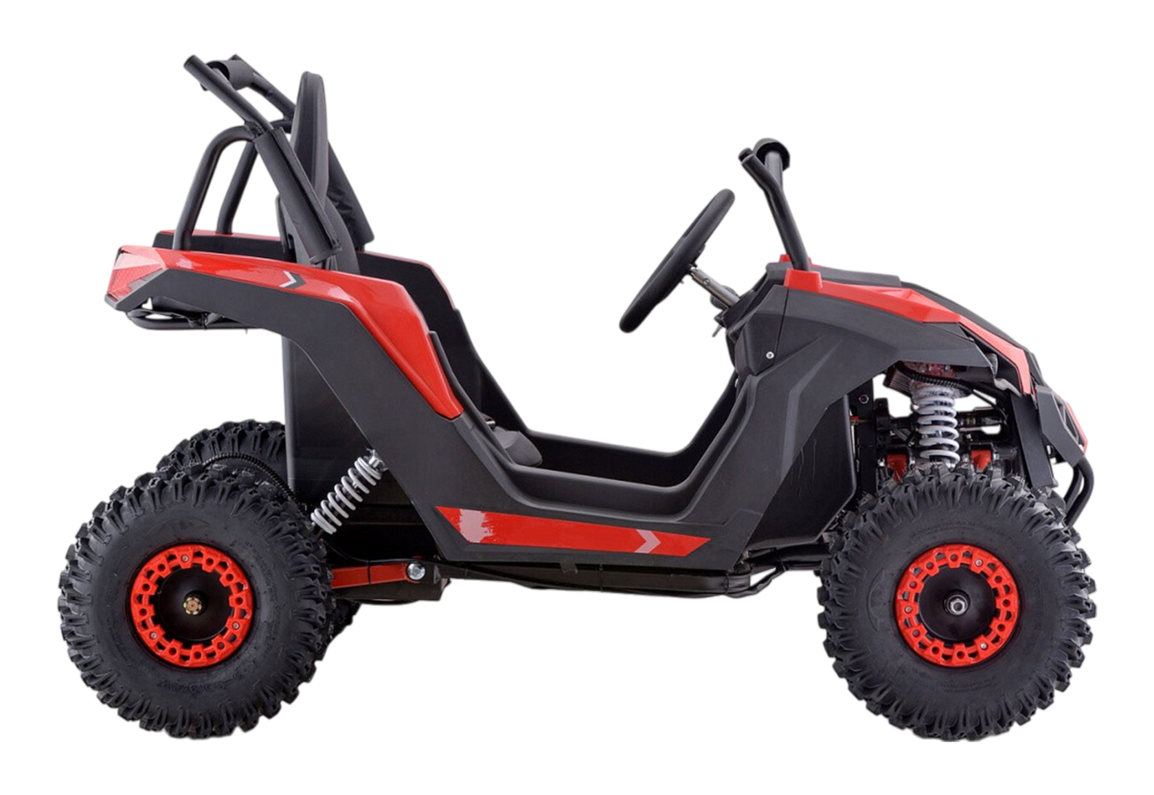 SCANMOTO COBRA - это детский спортивный электробагги. Металлическая рама, большой ход регулируемой подвески, четыре скорости - три для движения вперед и одна для движения назад, глубокий внедорожный протектор покрышек, регулировка руля на себя - от себя, ремни безопасности позволяют ребёнку от 7 лет почувствовать себя настоящим пилотом спортивного болида. Багги COBRA - это первая ступень освоения взрослой автотехники. Именно на нём закладываются азы навыков управления современным автомобилем. Важно отметить, что при эксплуатации данного багги требуется ОБЯЗАТЕЛЬНО НАДЕВАТЬ РЕБЁНКУ ШЛЕМ. Багги прост в управлении и легок в использовании. Пробега 30 км на одной зарядке более, чем достаточно, чтобы ребёнок получил удовольствие от езды. К радости соседей багги COBRA не издает громкого шума и не выбрасывает выхлопные газы. Не требует заправки бензином, замены масла и серьёзного технического обслуживания. Надо всего лишь не забыть вечером воткнуть вилку в розетку.