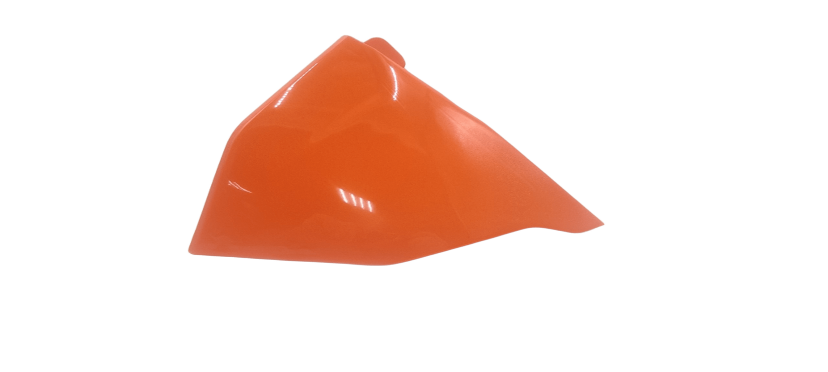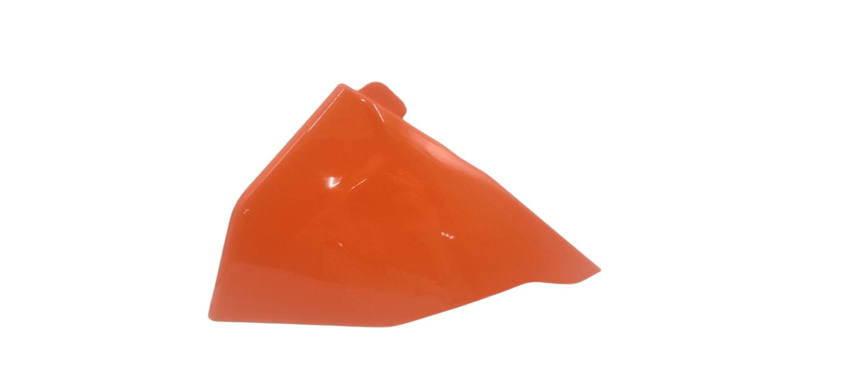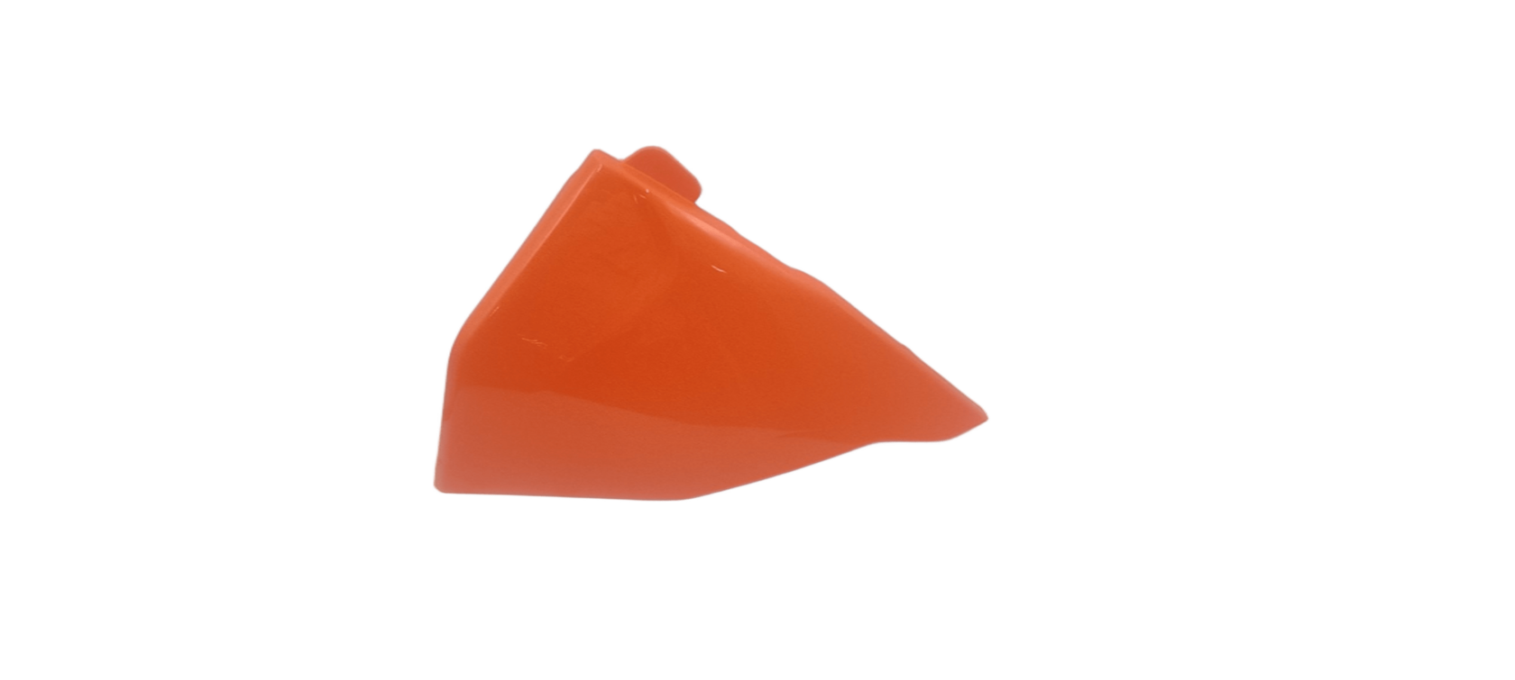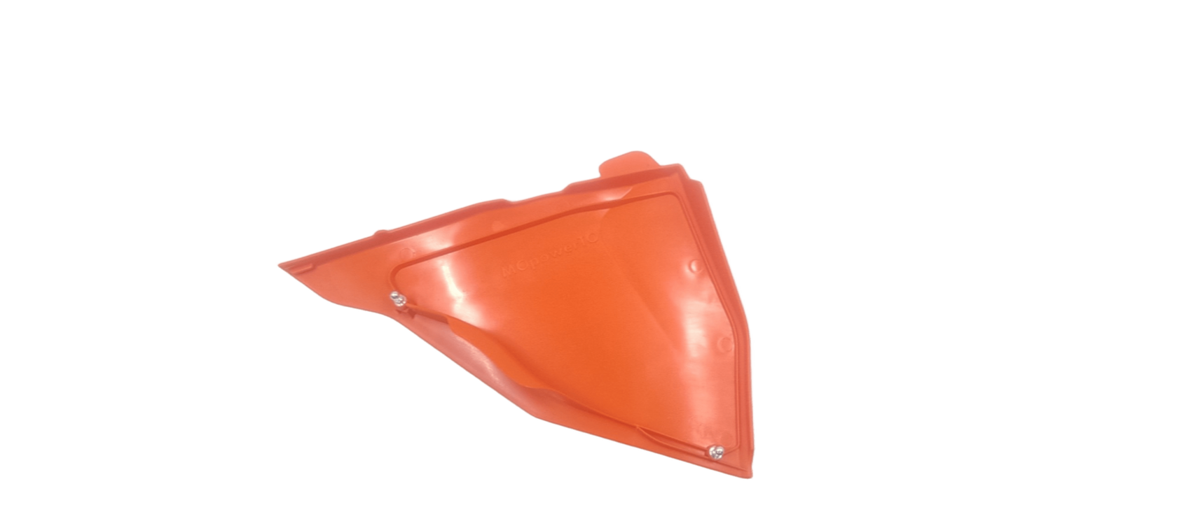Боковой обтекатель-крышка воздушного фильтра левого борта оранжевого цвета. Совместим с мотоциклами, использующими тип пластика KTM 2019-2023 годов. Интегрированная конструкция объединяет обтекатель и крышку фильтрбокса. Подходит для моделей PROCIDA 2020 PR300, BRZ X5M-X8, BRZ X6 NB, Progasi 300 Wave, Gr8.