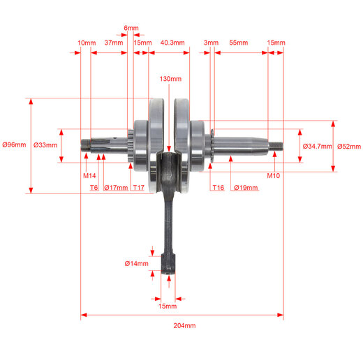 Прямая замена заводского коленвала для моторов 1P53FMH (110 см³), 1P52FMH (110 см³), 1P52FMI (125 см³), YX125 (1P53FMI/1P54FMI).