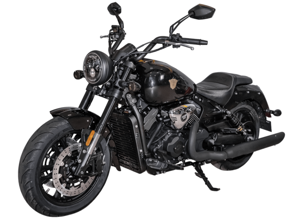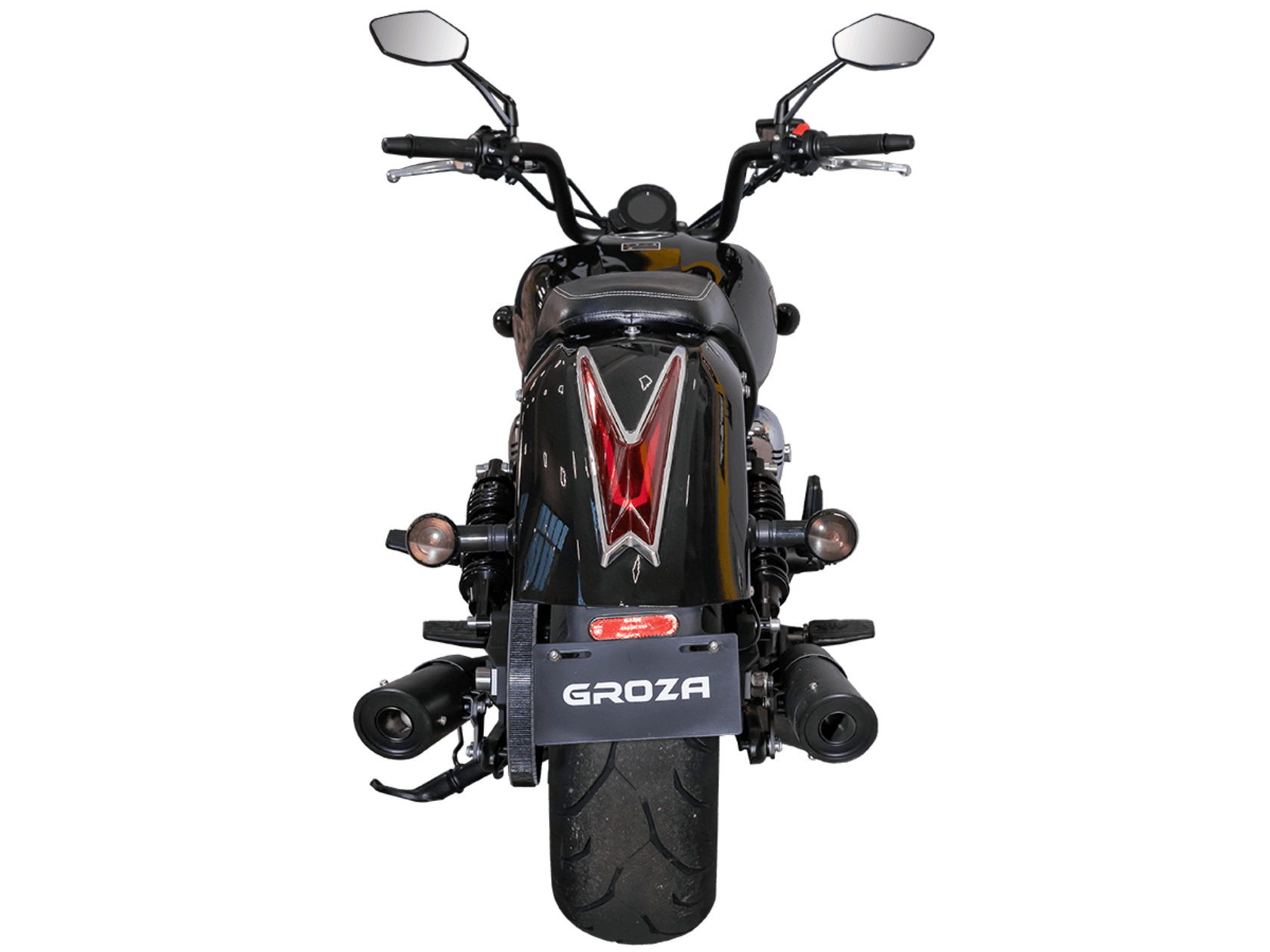 GROZA SL800 – великолепный круизёр, который подойдёт как для повседневной городской езды, так и для комфортного перемещения на длинные дистанции. Его дизайн исполнен в классическом стиле, соответствующем всем канонам данного типа мотоциклов.Двухцилиндровый V-образный двигатель объёмом 800 см3 мощностью 61 л.с. при высоких показателях динамики и отличном крутящем моменте способен разгонять аппарат до 160 км/ч. Инжекторный впрыск топлива с инжектором DELPHI увеличивает топливную экономичность, а также позволяет добиться высокой приёмистости и неприхотливости агрегата. Привод на ведущее колесо осуществляется ремнём знаменитой марки USA Gates. Жидкостная система охлаждения не допустит перегрева мотора даже при самом агрессивном вождении.Аппарат имеет 6-ступенчатую механическую коробку передач с классической схемой “1-N-2-3-4-5-6”. На мотоцикл установлены литые алюминиевые диски диаметром 17 дюймов. Ширина передней покрышки – 140 мм, задней – 200 мм. С неровностями дороги эффективно справляются телескопическая вилка перевёрнутого типа спереди и маятник с двумя газонаполненными амортизаторами сзади. Подвеска имеет 7 ступеней регулировки, что обеспечивает лёгкую перестройку на различные режимы езды. Для всего класса круизёров такая опция – большая редкость. Эффективное и безопасное замедление с любых скоростей обеспечивают гидравлические дисковые тормоза спереди и сзади от компании NISSIN.Аппарат оснащён своеобразной и очень привлекательной по дизайну светодиодной оптикой, а также бортовым компьютером и ярким и информативным дисплеем.Мотоцикл сочетает в себе отличные технические характеристики, богатое оснащение, комфорт и надёжность, что позволяет вам ощутить настоящую свободу на любой дороге