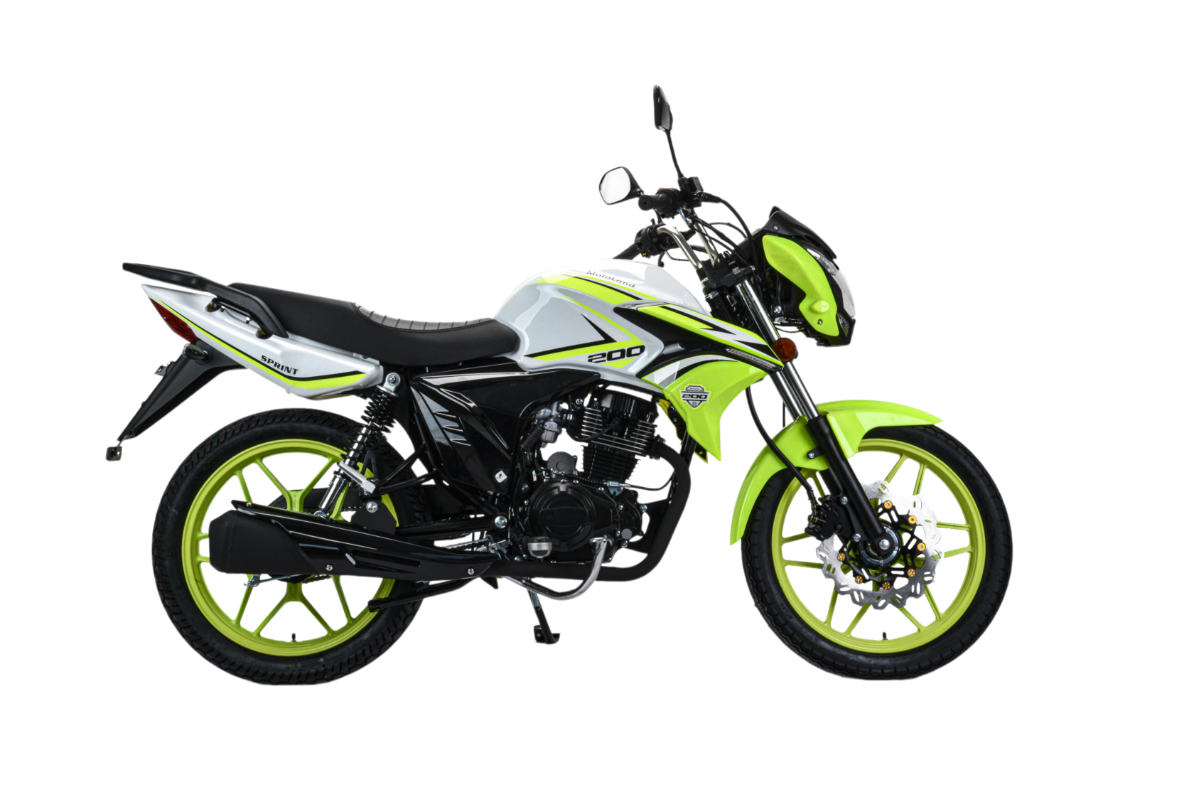 MOTOLAND SPRINT 200 - отличный вариант байка для тех, кто только решил приобщиться к мотокультуре и пересесть на двухколесную технику основательно, ведь он небольшого размера и легкий.Данный мотоцикл зачастую используется в автошколах для обучения учеников, ведь научиться водить на нем проще простого.Расход топлива 3,7л. на 100км.Мотоцикл оснащен бензиновым 200-кубовым двигателем 164FML с балансиром ,карбюраторной системой питания PZ30. Охлаждается движок воздушным путем. Механическая коробка передач пятиступенчатая. Для запуска двигателя имеется как кикстартер, так и электростартер.Работа подвески мотоцикла организована на базе стандартных компонентов: передней телескопической вилки и двух задних амортизаторов.Размер колес 18/18. Колесные диски литые