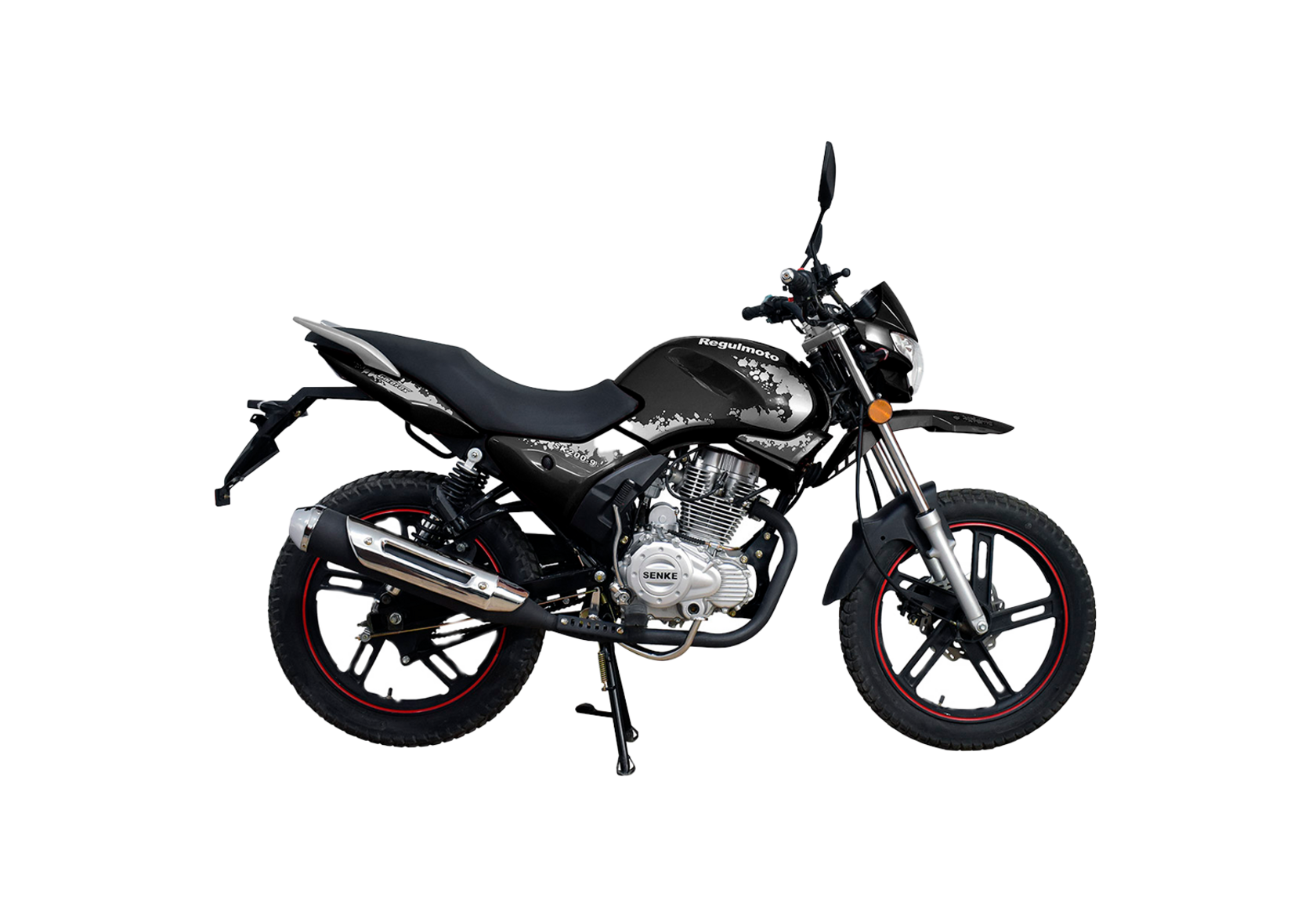 Комплектация За безопасность использования мотоцикла Regulmoto SK200-9 отвечают надежная тормозная система (дисковый тормоз спереди и барабанный сзади)и зеркала заднего вида.