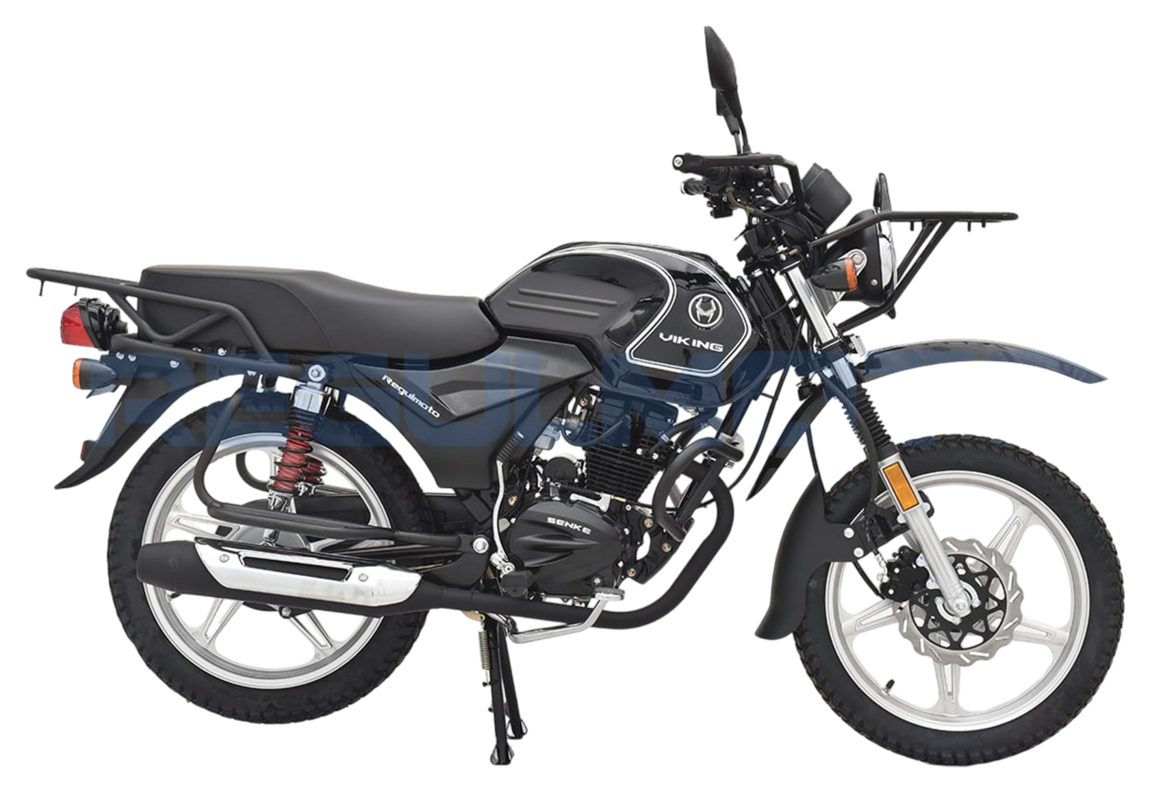 Компания «Regulmoto» представляет вниманию поклонников двухколесной мототехники мотоцикл Regulmoto VIKING – надежный и доступный для многих байк с широкими эксплуатационными возможностями. Мотоцикл Regulmoto VIKING – один из ярких представителей линейки малокубатурной мототехники известного азиатского производителя Senke. Мотоциклы производства одного из крупнейших китайских концернов пользуются заслуженным признанием экспертов и мотолюбителей в различных частях света, включая Европу и Америку. Продукцию Senke отличают не только одно из лучших на рынке соотношений достойного качества и демократичной цены, но и солидный эксплуатационный ресурс, высокая надежность, простое и недорогое сервисное обслуживание.В раме мотоцикла с 18-дюймовыми колесами на литых дисках установлен 4-тактный 150-«кубовый» двигатель с воздушным охлаждением, который способен развивать максимальную мощность в 11,6 лошадиных сил. Наличие у двигателя балансирного вала способствует снижению вибрации при работе мотора. 5-ступенчатая трансмиссия, электростартер, полноценная подвеска, представленная телескопической вилкой спереди и двумя амортизаторами и маятником сзади, приборная панель и емкий топливный бак – все это позволит получать максимум удовольствия от поездки. За безопасность использования мотоцикла отвечают надежная тормозная система (дисковый тормоз спереди и барабанный сзади), комплект светового оборудования и зеркал заднего вида.