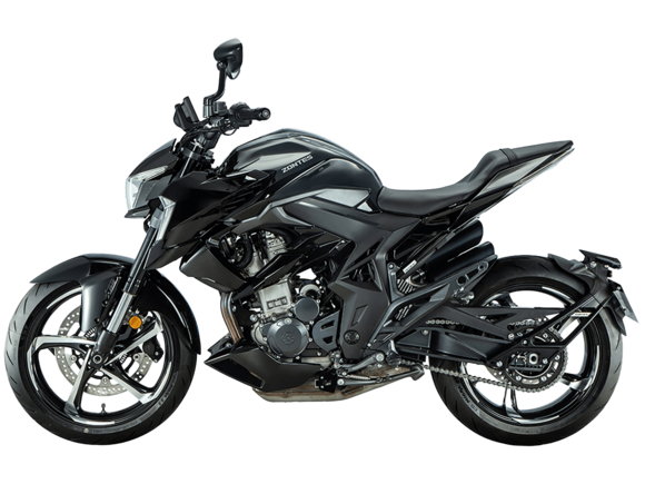 Мотоцикл ZONTES ZT350-R – современный нейкед со стремительным и дерзким дизайном. Хорошо подходит как для поездок в городской среде и маневрирования в межрядье.Силовая установка представлена одноцилиндровым 4-тактным двигателем ZT184MP с 4 клапанами и 2 верхними распредвалами. Двигатель имеет объём 348 см³ и обеспечивает мощность в 39 л.с. Оснащён инжектором BOSCH и системой жидкостного охлаждения. Механическая коробка передач имеет 6 ступеней и схему 1-N-2-3-4-5-6. Запуск двигателя осуществляется с помощью бесключевого доступа.Ёмкость топливного бака 15 литров.Колёса представлены литыми алюминиевыми дисками диаметром 17 дюймов. На мотоцикл установлены датчики давления в шинах, показатели от которых выводятся на приборную панель. Для подвески спереди используется телескопическая вилка, сзади – моноамортизатор. Гидравлические дисковые тормоза произведены испанской компанией J.JUAN, входящей в холдинг BREMBO.Для освещения используется яркая LED-оптика, а приборная панель представлена цифровым дисплеем. Имеется 2 USB-порта.Габариты мотоцикла 2030х795х1120 мм. Колёсная база 1390 мм. Высота по седлу 795 мм. Вес 165 кг.Комплектация и внешний вид мотоцикла могут отличаться в зависимости от поставки. Изображение на сайте не гарантирует наличие тех или иных опций. Уточняйте информацию при оформлении заказа.