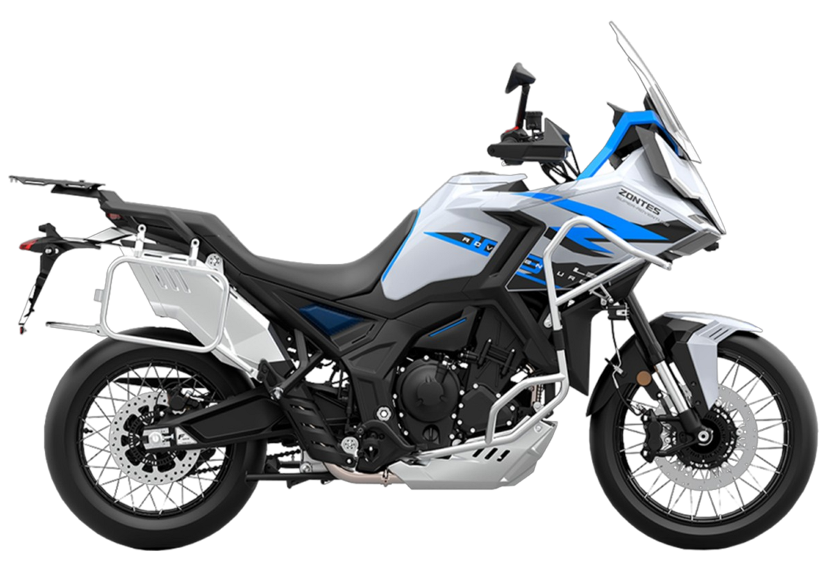 Мотоцикл ZONTES ZT703-F Tour 21/18 2025 – универсальный турэндуро, который подойдёт как для городских поездок, так и динамичных прохватов по грунту благодаря производительной подвеске. Узнайте, что такое настоящее наслаждение путешествием!Силовая установка представлена 3-цилиндровым 4-тактным двигателем объёмом 699 см³ с 4 клапанами на каждом цилиндре и 2 верхними распредвалами. Двигатель способен развивать мощность до 97,2 л.с. при 10 000 об/мин и высокий крутящий момент 76 Н·м при 7500 об/мин, что позволяет развивать большую скорость и с лёгкостью преодолевать трассы со сложным рельефом. Соотношение диаметра цилиндра и хода поршня 70х60,6 мм. Степень сжатия 13:1. Может работать в 2 режимах: ECO и SPORT. Запуск двигателя осуществляется с помощью бесключевого доступа. Установлена алюминиевая защита.Жидкостная система охлаждения эффективно поддерживает оптимальную температуру двигателя. На мотоцикл установлена 6-ступенчатая коробка передач, оснащённая квик-шифтером для переключения передач без использования рычага сцепления.В конструкции мотоцикла используется пространственная алюминиевая рама. Спереди и по бокам картера установлена металлическая защита двигателя. Выхлопная система оснащена стильным глушителем. Ёмкость топливного бака 22 литра.На мотоцикл установлены спицованные бескамерные колёса диаметром 21 дюйм спереди и 18 дюймов сзади. Подвеска изготовлена итальянским производителем MARZOCCHI. Спереди используется телескопическая вилка перевёрнутого типа с ходом 180 мм. Сзади установлен моноамортизатор с ходом 180 мм. Оба компонента регулируются.Дисковые гидравлические тормоза произведены компанией J.JUAN, входящей в холдинг BREMBO. Спереди используется двойной диск 310 мм с 4-поршневыми суппортами, а на заднем колесе расположен диск 260 мм с однопоршневым суппортом. Мотоцикл также оснащён 2-канальной ABS-системой с возможностью отключения, а также настраиваемой противобуксовочной системой.На мотоцикле используется яркая LED-оптика с дополнительным светом и многофункциональная приборная TFT-панель, положение которой можно регулировать. Рычаги тормоза и сцепления можно регулировать. Руль оснащён функцией подогрева и защитой рук. Спереди и сзади установлены видеорегистраторы. Мотоцикл оснащён датчиками давления в шинах. Ветровое стекло имеет электронную регулировку и настраивается через кнопки на руле. Имеется 2 USB-порта. Вещи можно перевозить в багажном отсеке, или присоединить кофры для перевозки: имеется площадка для установки центрального кофра и крепления для боковых кофров. Мотоцикл поставляется с центральной подножкой в комплекте.Габариты мотоцикла 2355x940x1395 мм. Колёсная база 1550 мм. Высота по седлу 830 мм. Вес 228 кг.