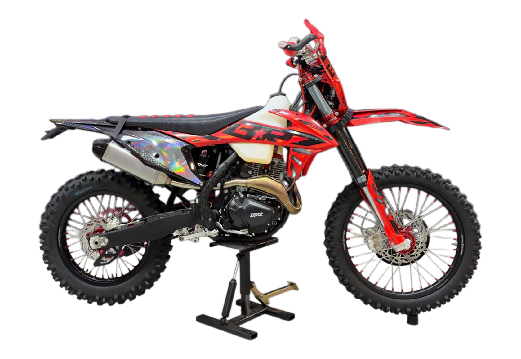 Мотоцикл BRZ X5S 2023 года - полноразмерный эндуро мотоцикл. Он специально создан для райдеров, которые уже выросли из питбайка и хотят раздвинуть свои пределы.Он подойдет и начинающим эндуристам с ростом от 175 см. X5S идеально себя чувствует в лесных прохватах с преодолением различных препятствий благодаря небольшому весу, тяговитому двигателю и большим колесам 21/18.Мотоцикл максимально упрощен для большей надежности. Из электрики он снабжен светодиодной фарой, электростартером. Установлен двигатель Zongshen ZS172FMM-7 4V с балансировочным валом. По сути в нем просто нечему ломаться, можно смело ездить в лесные мото походы на 40 - 200 км. Инженеры BRZ moto учли все ошибки конкурентов и снабдили мотоцикл качественными подвесками и алюминиевыми ободами Enduro X-Series. Был переработан узел верхнего крепления двигателя к раме, избавивший от повышенных вибраций. Ведомую звезду закрепили на 6 потайных болтов. Ну и не стали экономить на карбюраторе - в базе установленNIBBI RACING BLACK PWK32! Подведя итог можно смело заявить что X5S - идеальный выбор для тех, кто хочет купить настоящий мотоцикл!
