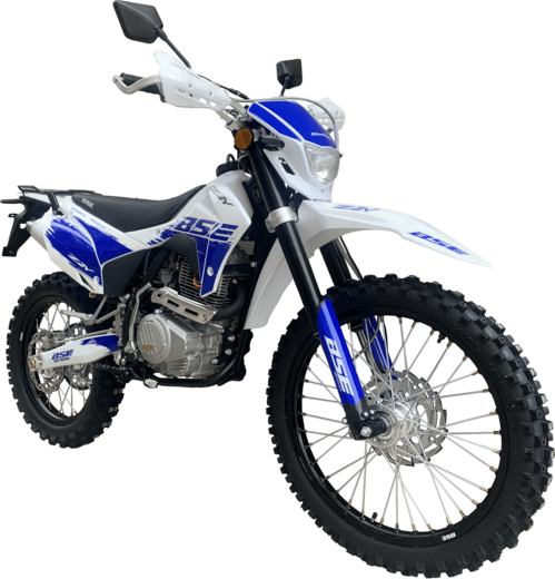 Кроссовый мотоцикл BSE Z3 Y 21/18 дает возможность беспрепятственно покорять бездорожье и комфортно передвигаться в городских условиях. Это модель двойного назначения, она относится к среднеразмерной линейке и имеет ПТС для свободного передвижения по дорогам общественного назначения.Движущую силу, равную 21 л.с., производит мощный 250-кубовый двигатель с воздушным охлаждением. Слаженную работу этого четырехтактного агрегата обеспечивает производительный карбюратор PE-30 от Nibbi, а эффективность – механическая 5-ступенчатая КПП с многодисковым масляным сцеплением.Основу конструкции составляет жесткая стальная рама, оснащенная литыми усилителями. Регулируемая подвеска и гидравлическая тормозная система HSК Racing улучшают управляемость байка и безопасность движения. Высокую проходимость гарантирует наличие большого клиренса в 330 мм и внедорожной резины с агрессивным протектором