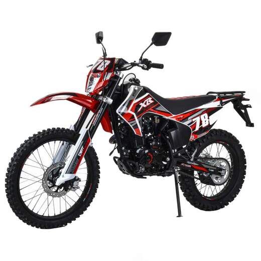 Motoland XR 300 Lite (175FMM) с ПТС – бюджетный короткобазный кроссовый мотоцикл с уменьшенной высотой по седлу и мощным двигателем 175FMM на воздушном охлаждении 300 cc мощностью 25 лс.Ключевыми особенностями мотоцикла являются его компактные габариты, стальная рама, современная подвеска с предустановленными настройками с завода, мощные тормоза, стальные колесные диски, наличие электростартера и кик стартера, прямоточный выхлоп, обвес из АБС пластика, LED оптика с возможностью переключения ближний \дальний, заниженное комфортное сидение.- ПТС версия с зеркалами и повортниками.- Двигатель ZS 175FMM – 300 кубовый «тяговитый» двигатель с высокими показателями крутящего момента и мощностью 25 лс, на воздушном охлаждении.-карбюратор PZ 30 обеспечивает бесперебойную работу двигателя в любом диапазоне температуры и высоты.- Стальная рама обеспечивает солидный запас прочности, ресурс и ремонтопригодность- Энергоемкая подвеска с заводскими настройками гарантирует уверенное преодоление неровностей
