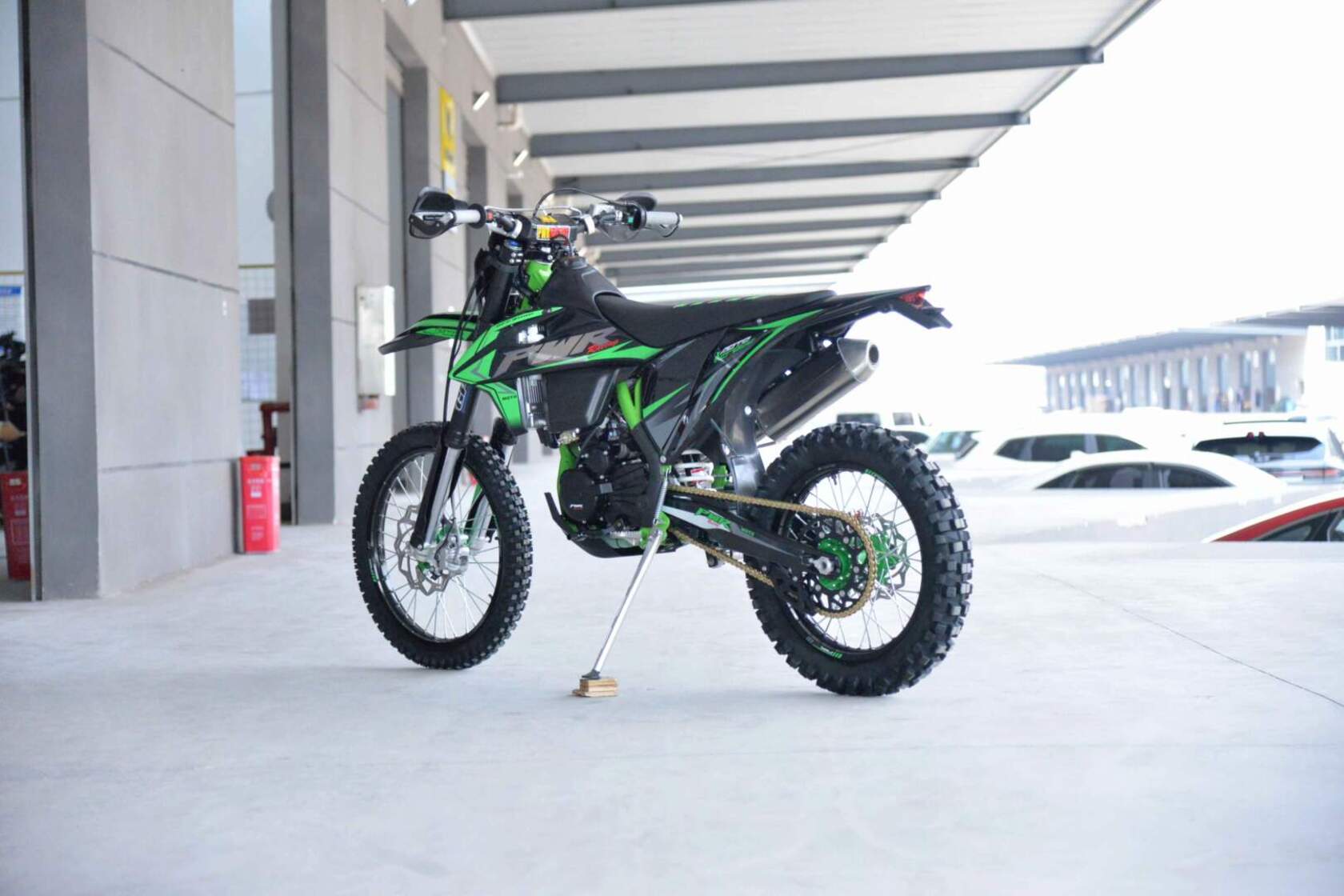 PWR FM300Современный дизайн мотоцикла подчёркивает спортивный характер байка.Установлен мощный двигатель с водяным охлаждением ZONGSHEN 174MN-3Большой ход подвесок для комфортного передвижения по пересеченной местности, которые также позволяют ехать быстро и агрессивноМотоцикл больше предназначен для езды по переченной местности полям и лесам, чем для города из за профиля резины.Он маневренный и удобный, сидение с противоскользящим чехлом.При этом он прост в управлении и неприхотлив в обслуживании и подходит мотолюбителям любого возраста и опыта вождения.Технические характеристикиАнтибуксаторы спереди и сзади для езды на пониженном давлении или защиты от прокручивания камерыВыхлопная труба с Power Bomb и креплениями под пружины и прямоточным глушителем, в котором установлена флейта