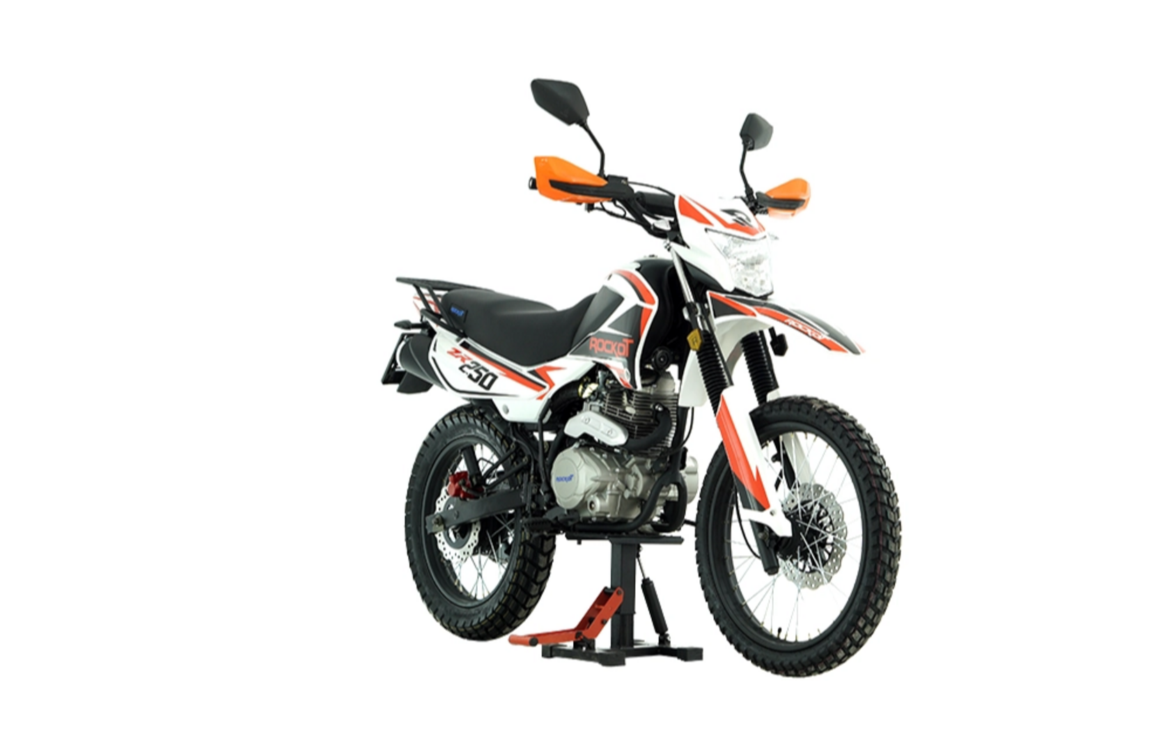 Представляем вашему вниманию новинку сезона 2024 года - бюджетный софт-эндуро мотоцикл ROCKOT ZR250.ZR250 - это полноценный эндуро мотоцикл с электронным ПТС, который был создан для повсеместной езды, будь то асфальтированные дороги общего пользования, грунтовые проселочные дороги и, конечно же, бездорожье. ROCKOT ZR250 выполнен по всем канонам софт-эндуро, а именно: прочный металлический бак, облицовка из мягкого ударопрочного пластика, широкое и комфортное сиденье для водителя и пассажира, а в задней части установлен стальной багажник. Мотоцикл производится в двух вариантах расцветки графики: черно-красной и черно-оранжевой.Дизайн мотоцикла ROCKOT ZR250 напоминает классический эндуро мотоцикл японского производства начала 2000-х годов. Именно эти байки послужили прообразом для создания бюджетного лайт-эндуро мотоцикла. Классическая вилка спереди, безлинковая подвеска сзади и колесная компоновка 21/18 - все это делает мотоцикл стильным, аутентичным, проходимым и доступным. ROCKOT ZR250 оснащен четырехтактным двигателем объемом 223 см³ и мощностью 16 лошадиных сил. Отличительная особенность этого двигателя от других “одноклассников” - это нижний распредвал и привод ГРМ штангами-толкателями. Данная конструкция двигателя является очень простой и надежной.Также, большим преимуществом газораспределительного механизма с приводом на толкателях, считается широкий диапазон крутящего момента во всех диапазонах вращения коленчатого вала.Система питания двигателя - карбюраторная, с высокопроизводительным карбюратором PZ30 с ускорительным насосом, который обеспечивает быстрый отклик на ручку газа, а также стабильную работу даже при холодном запуске. Обогатитель топливной смеси расположен на руле, что делает очень удобным первый запуск.Двигатель оснащен балансирным валом, снижающим уровень вибрации. Мотоцикл построен на прочной стальной раме, окрашенной в черный матовый цвет. Мотоцикл оборудован подножками для перевозки пассажира. Подрамник также выполнен из стали, к которому крепится металлический багажник, позволяющий перевозить грузы и установить центральный кофр. Подвеска ROCKOT ZR250 типична для данного класса мотоциклов - софт-эндуро. Это классическая вилка спереди, длиной 840 мм, и моноамортизатор, длиной 300 мм, сзади. Система рычагов прогрессии отсутствует, что облегчает эксплуатацию и обслуживание подвески мотоцикла. Несмотря на классическую простоту амортизаторов, они позволят комфортно ездить по бездорожью даже с пассажиром. Спереди и сзади установлена дисковая гидравлическая тормозная система. Передний тормозной диск увеличенного диаметра - 270 мм, который работает в паре с двухпоршневым суппортом. Задняя тормозная система имеет диск диаметром 240 мм и однопоршневой суппорт. Гидролиния тормозной системы состоит из армированных шлангов, которые обеспечивают наилучший отклик тормозной системы и повышенную надёжность всей системы. ROCKOT ZR250 с завода комплектуется универсальными туристическим шинами, позволяющими передвигаться по любому типу поверхностей. Передняя шина имеет размерность 90/90-21, а задняя - 120/90-18. Шины установлены на прочные стальные диски, окрашенные в черный матовый цвет.Привод на заднее колесо осуществляется цепью с шагом 520. Ведомая приводная звезда из стали насчитывает 45 зубьев. Кому подойдет эндуро мотоцикл ROCKOT ZR250Колесна