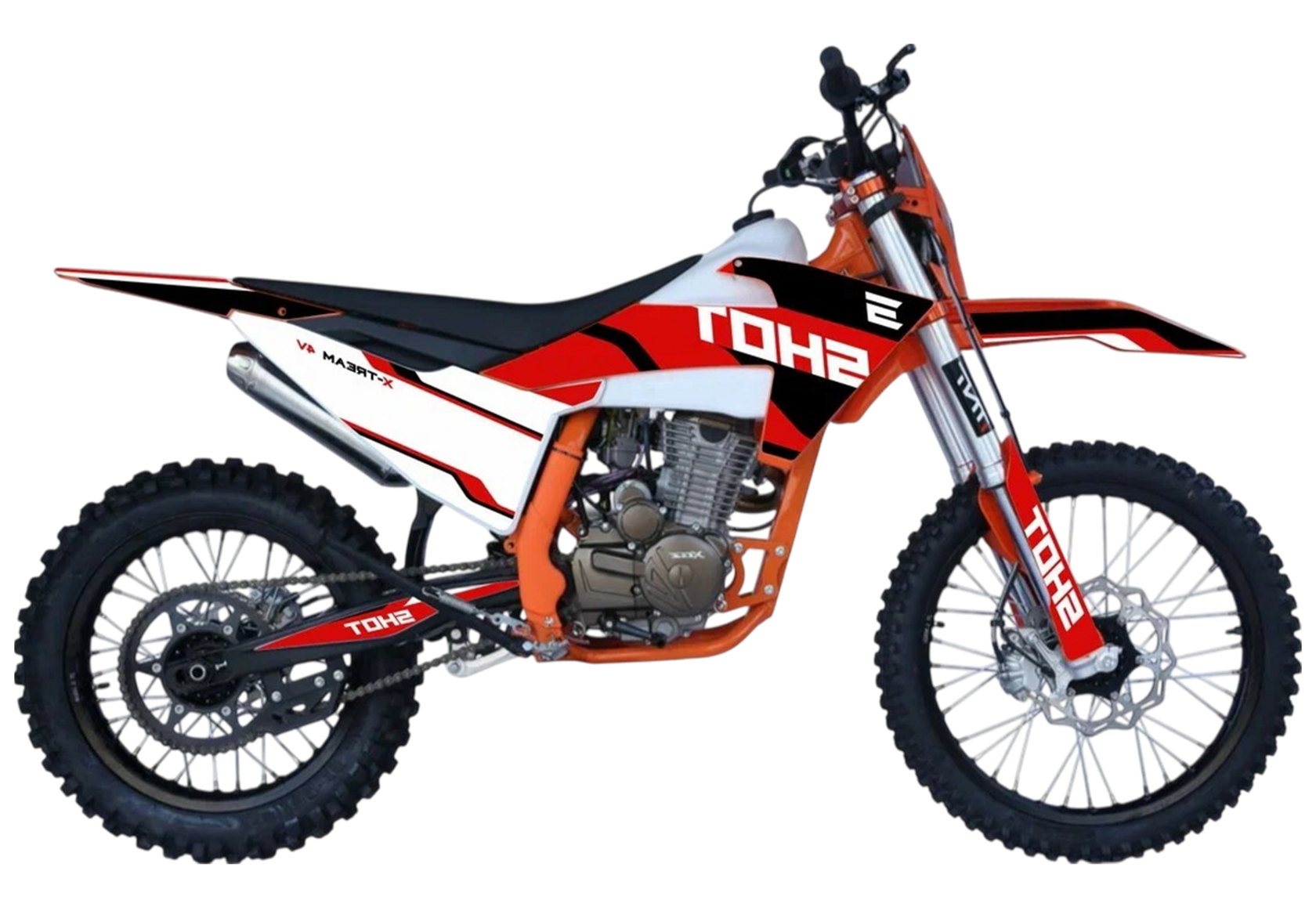 Эндуро мотоцикл SHOT X-TREAM 4V YB250R — максимум возможностей на бездорожьеSHOT X-TREAM 4V YB250R — это современный эндуро-байк, сочетающий мощность, лёгкость управления и надёжную конструкцию. Благодаря двигателю с баланс-валом и продуманной геометрии, он подойдёт как для уверенного передвижения по пересечённой местности, так и для активных тренировок.Технические характеристики:– Объём двигателя: 250 куб. см