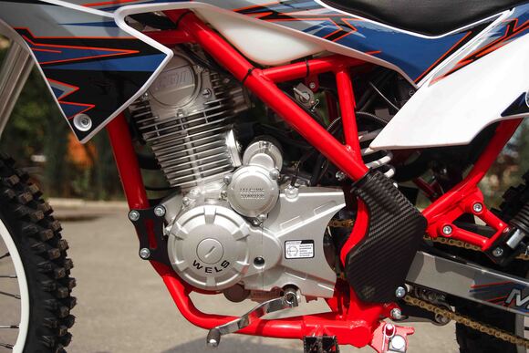 Представляем Вам новую модель мотоцикла от компании WELS - Мотоцикл WELS MX-250 R 2019-го года выпуска. У нас Вы можете купить этот мотоцикл с бесплатной доставкой по РФ и гарантией до года. Также его можно приобрести в рассрочку или в кредит. Мотоцикл WELS MX-250 R является надежным и комфортным в эксплуатации. В раме на колесах 21/18 с стальными ободьями и буксаторами установлен проверенный 4-тактный двигатель с воздушным охлаждением Zongshen 165FMM. Подготовкой топливной смеси для двигателя занимается карбюратор KEIHIN; технический потенциал силовой установки мотоцикла позволяет продемонстрировать 17 «лошадей» максимальной мощности. Подвеска аппарата представлена традиционными вилкой-перевертышем спереди, а также маятником, линком прогрессии и моноамортизатором .Высокая надежность, удобство управления в сложных условиях бездорожья, а также простота сервисного обслуживания обеспечена подбором качественных комплектующих и компонентов мотоцикла.