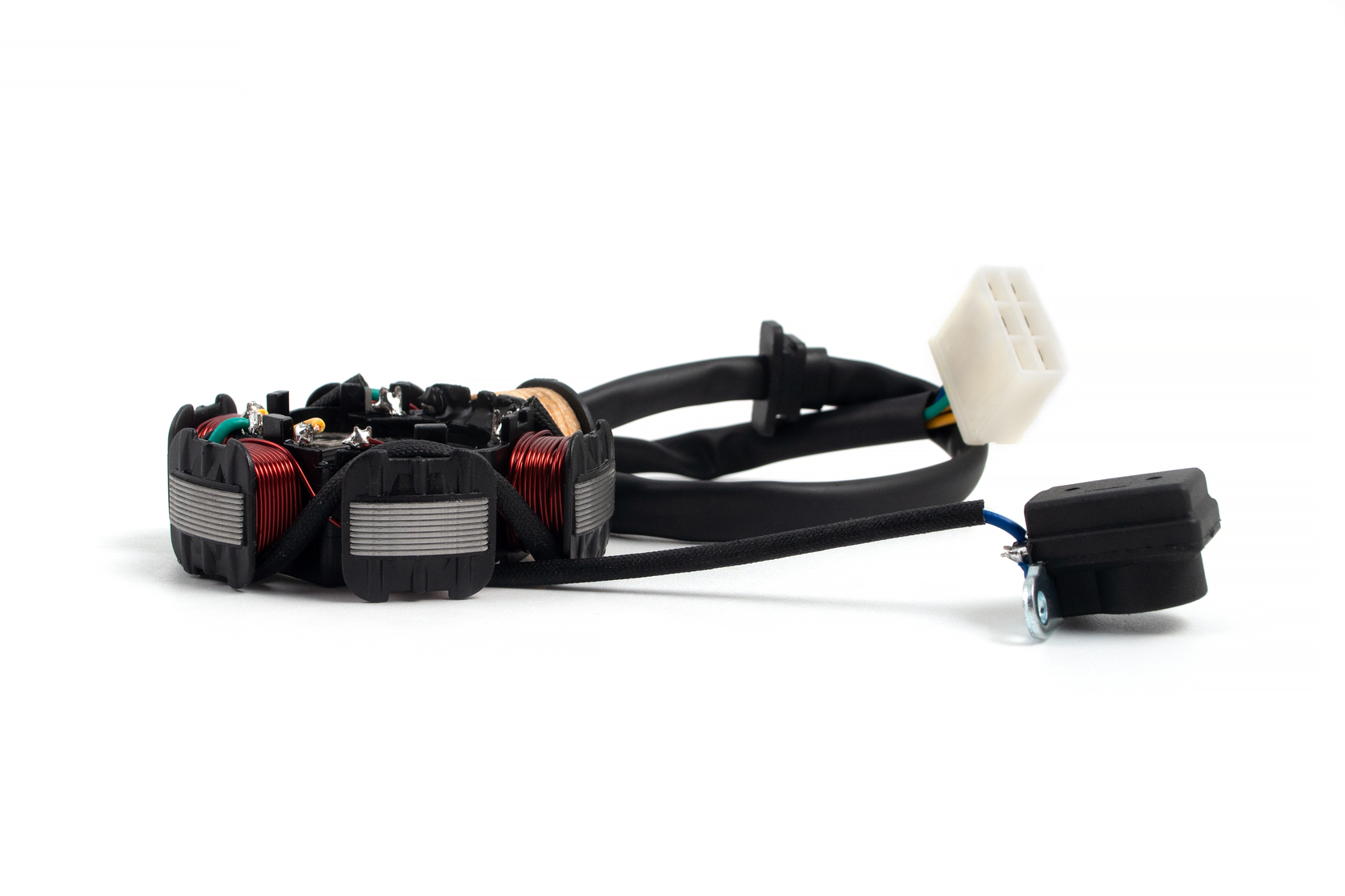 Статор (6 катушек)Предназначен для двигателей 139FMB, 147FMH, 152FMH с объёмом 50–125 см³. Идеально подходит для питбайков, квадроциклов, мопедов и другой мототехники.Особенности:6 катушек обеспечивают стабильную работу генератора.Совместим с электросистемами, питая зажигание, фары, датчики и другие компоненты.Надёжная конструкция для долговечной эксплуатации.Применение: ремонт или модернизация двигателей китайского и азиатского производства.