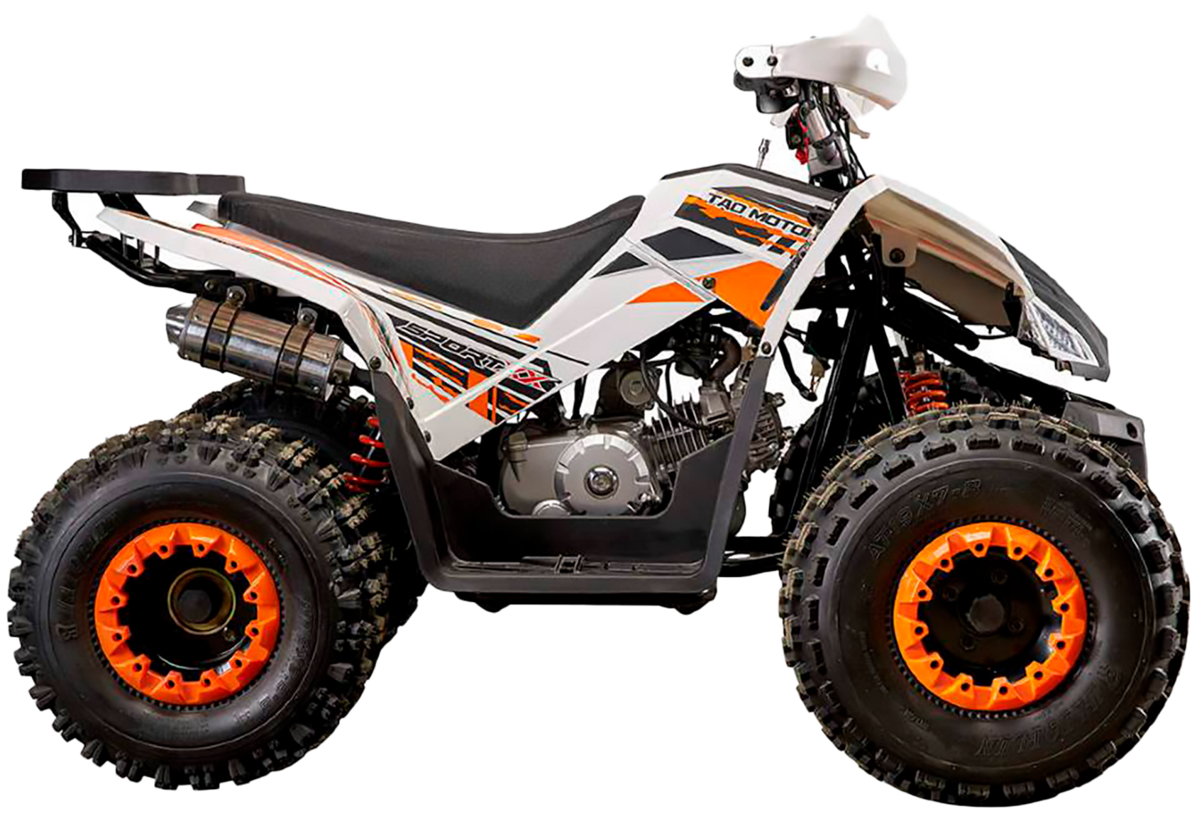 Спортивный экстерьер и модная гоночная многоцветная раскраска пластиковых частей корпуса привлекает внимание всех, кому квадроцикл попадается на глаза. Песочные шины повышенной проходимости с агрессивным протектором гармонично дополняют дизайн машины. Защита рук водителя, багажник, LED-спидометр, светодиодные фары и стоп-сигнал – всё это входит в базовую комплектацию АТВ.