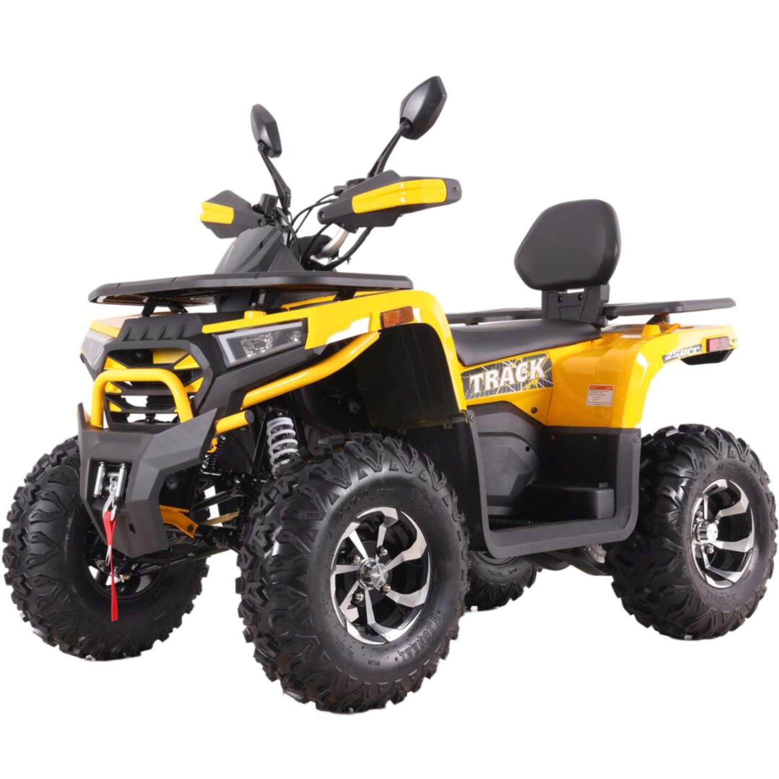 Wild Track Lux – сочетает в себе удобство ,простоту обслуживания и хорошую проходимость в самых разных условиях использования . Благодаря отлично настроенной подвеске управление и передвижение на нем становится очень комфортным. Все неровности и кочки, будут проглатываться без проблем, ведь на нем установлены колеса на 10 дюймов .Квадроцикл оснащен 161 QMK на 200 см3 двигателем c воздушно-маслянным охлаждением и автоматической коробкой передач с реверсом , дисковыми тормозами, панелью приборов , линзованной оптикой с диодными ДХО и люстрой , литыми дисками, ручным стартером . Он отлично подойдет для семейных покатушек ,а также для рыбалки и охоты .Вы получите незабываемые впечатления от вождения .