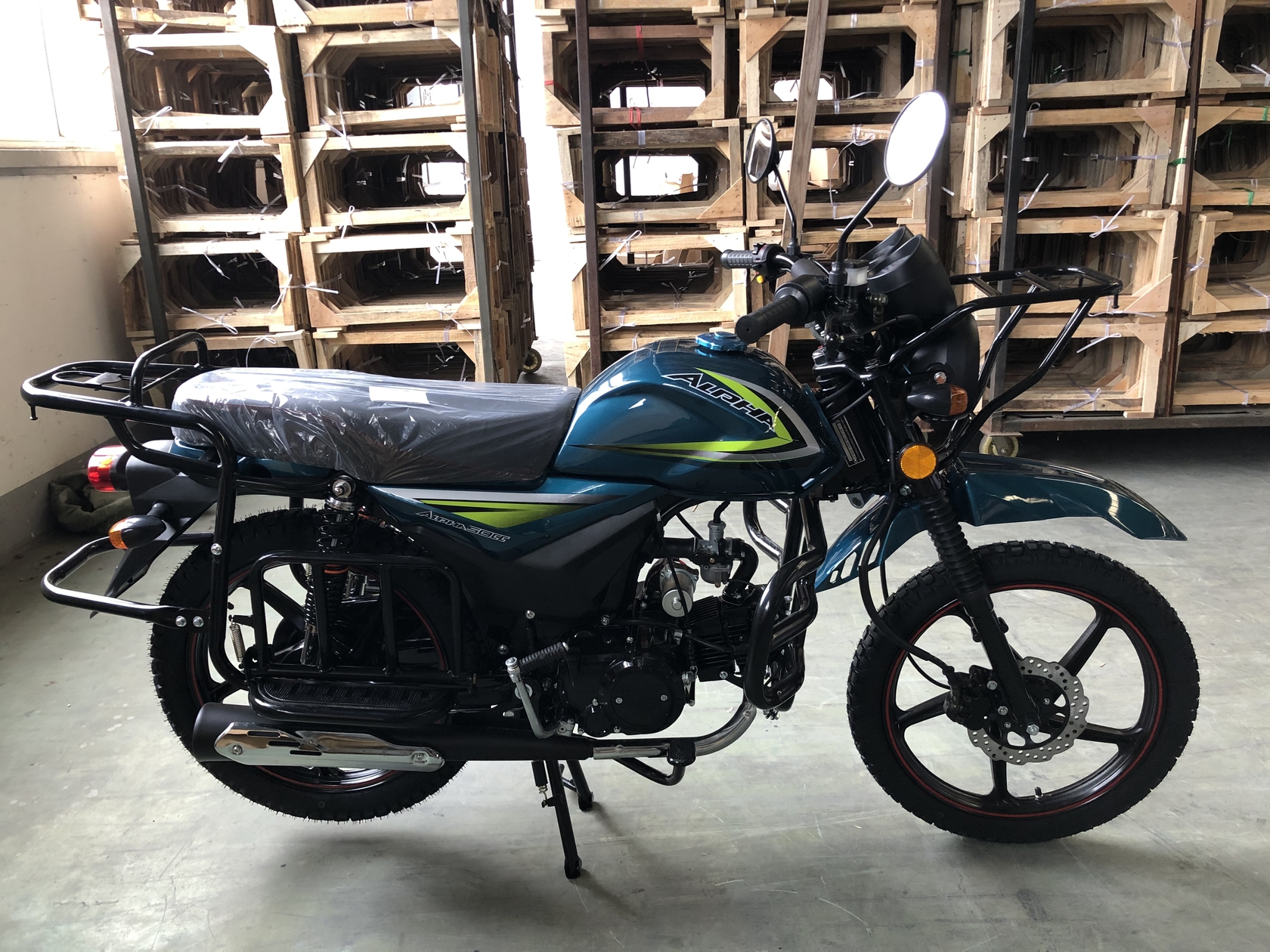 «живая классика» китайской мотоиндустрии, один из самых доступных представителей двухколесного транспорта утилитарного назначения. Новое поколение Alpha готово продемонстрировать улучшенные показатели производительности, высокую надежность в повседневной эксплуатации и традиционную неприхотливость в сервисном обслуживании. Данный мопед комплектуется надежным «кабовским» двигателем – одноцилиндровым 4-тактником воздушного охлаждения с 4-ступенчатой трансмиссией. Рабочий объем мотора увеличен до 110 см3 благодаря установке нового комплекта ЦПГ на заводе-изготовителе. Запуск двигателя возможно осуществить как при помощи кнопки электрострартера, так и при помощи рычага традиционного кик-стартера. Увеличение рабочего объема мотора заметно сказывается как на максимальной развиваемой мощности, которая составляет чуть больше семи лошадиных сил, так и на эксплуатационных характеристиках техники.Среди других усовершенствований комплектации обновленного мотоцикла следует отметить более мощные передние амортизаторы (диаметр до 28 миллиметров), усиленные тросы переднего тормоза и сцепления, современную светодиодную лампу в фаре головного света. Кроме того, на нем установлен полный комплект светотехники, зеркала заднего вида, аналоговая приборная панель, на которой отображаются пробег, скорость, выбранная передача, обороты двигателя, индикаторы работы поворотников и фары. Также имеются подножки для пассажира, багажный кофр, кожух защиты цепи и дуги безопасности.Владелец новенького Альфа Offroad по достоинству оценит экономичный двигатель, высокую надежность конструктивных решений и доступную стоимость сервисного обслуживания техники. Мопед полностью готов к комфортному использованию на дорогах города и проселках пригорода и способен успешно справляться с широким кругом эксплуатационных задач.