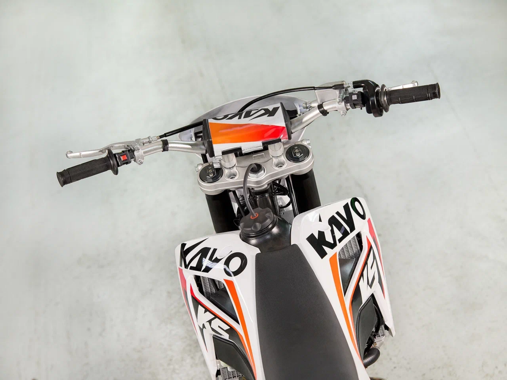 Кроссовый мотоцикл KAYO K5 Enduro – идеальный снаряд для внедорожного экстрима, представляющий собой оптимальный баланс производительности и технической оснащённости, поэтому он идеально подходит как новичкам, так и опытным райдерам. Удобный, простой и надёжный мотоцикл, который полностью оправдывает свою цену.Мотоцикл оснащён одноцилиндровым 4-тактным двигателем (ZONGSHEN NB300/ZS174MN-5) с балансирным валом и объёмом 280 см3, который обеспечивает высокую мощность (27 л.с.) и крутящий момент, что позволяет развивать большую скорость и с лёгкостью преодолевать трассы со сложным рельефом. Карбюратор NIBBI PWK34 обеспечивает бесперебойную работу техники в самых жестких условиях эксплуатации, простоту и лёгкость в обслуживании, а также неприхотливость к качеству топлива. Жидкостная система охлаждения не допустит перегрева мотора даже при самом агрессивном вождении. Аппарат оснащён 6-ступенчатой механической коробкой передач с классической схемой “1-N-2-3-4-5-6”.Усиленная рама из хром-молибденового сплава разработана фирмой KAYO. Передняя подвеска — регулируемая телескопическая вилка перевёрнутого типа длиной 880 мм, задняя — регулируемый моноамортизатор 470 мм с прогрессией, рассчитанный на высокие нагрузки. Оба компонента подвески произведены фирмой KKE. В паре они позволяют эффективно амортизировать удары при езде по неровностям и препятствиям на трассе. Мотоцикл оснащён классическими спицованными колёсами диаметром 18 и 21 дюйм. Эффективное и безопасное замедление с любых скоростей обеспечивают гидравлические дисковые тормоза.Мотоцикл достаточно компактен, поэтому он комфортен в эксплуатации одновременно и для мужчин среднего телосложения, и для девушек. Байк оснащён системой запуска двигателя при помощи кнопки электростартера или при помощи рычага кик-стартера.Высококачественная износостойкая резина с развитым протектором отлично держит дорогу на различных типах покрытия и в самых разных поворотах. Сиденье эргономичной формы покрыто антискользящим материалом. Данная модель укомплектована очень яркой фарой со светодиодным модулем, которая позволяет кататься и в ночное время.K5 Enduro сочетает в себе отличные технические характеристики, комфорт и надёжность, что позволяет вам ощутить настоящую свободу на любой трассе.