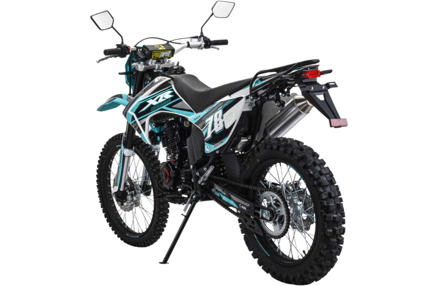 Motoland XR 300 Lite (175FMM) с ПТС – бюджетный короткобазный кроссовый мотоцикл с уменьшенной высотой по седлу и мощным двигателем 175FMM на воздушном охлаждении 300 cc мощностью 25 лс.Ключевыми особенностями мотоцикла являются его компактные габариты, стальная рама, современная подвеска с предустановленными настройками с завода, мощные тормоза, стальные колесные диски, наличие электростартера и кик стартера, прямоточный выхлоп, обвес из АБС пластика, LED оптика с возможностью переключения ближний \дальний, заниженное комфортное сидение.- ПТС версия с зеркалами и повортниками.- Двигатель ZS 175FMM – 300 кубовый «тяговитый» двигатель с высокими показателями крутящего момента и мощностью 25 лс, на воздушном охлаждении.-карбюратор PZ 30 обеспечивает бесперебойную работу двигателя в любом диапазоне температуры и высоты.- Стальная рама обеспечивает солидный запас прочности, ресурс и ремонтопригодность- Энергоемкая подвеска с заводскими настройками гарантирует уверенное преодоление неровностей