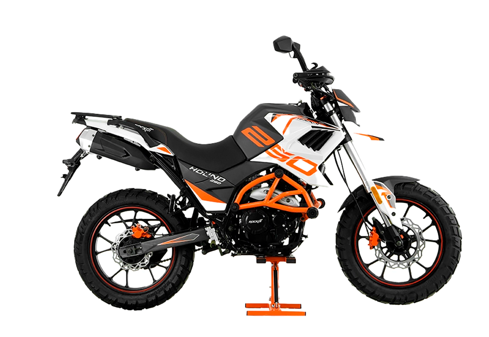 Главная ... Мотоциклы внедорожные Мотоцикл турэндуро ROCKOT HOUND 250 (белый/оранжевый, ЭПТС)