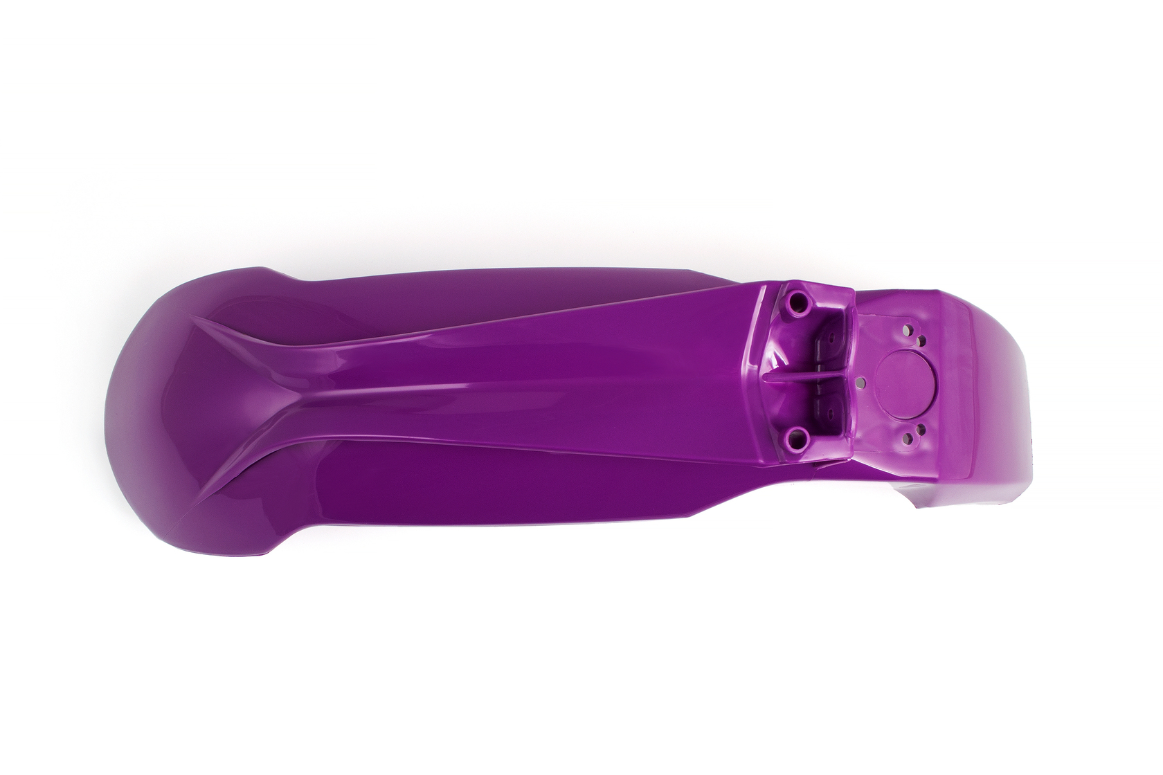 Фиолетовое переднее крыло предназначено для мотоциклов KTM 2015–2016 года выпуска, а также большинства китайских эндуро с рамами K5, K7, K8. Крыло выполнено из высокопрочного и эластичного пластика, полностью повторяет форму, размеры и посадочные разъёмы оригинальной детали KTM (артикул 7770801000004). Яркий фиолетовый цвет выделяет мотоцикл среди других и идеально подходит для обновления или тюнинга экстерьера. Лёгкая установка на штатные места без доработок.