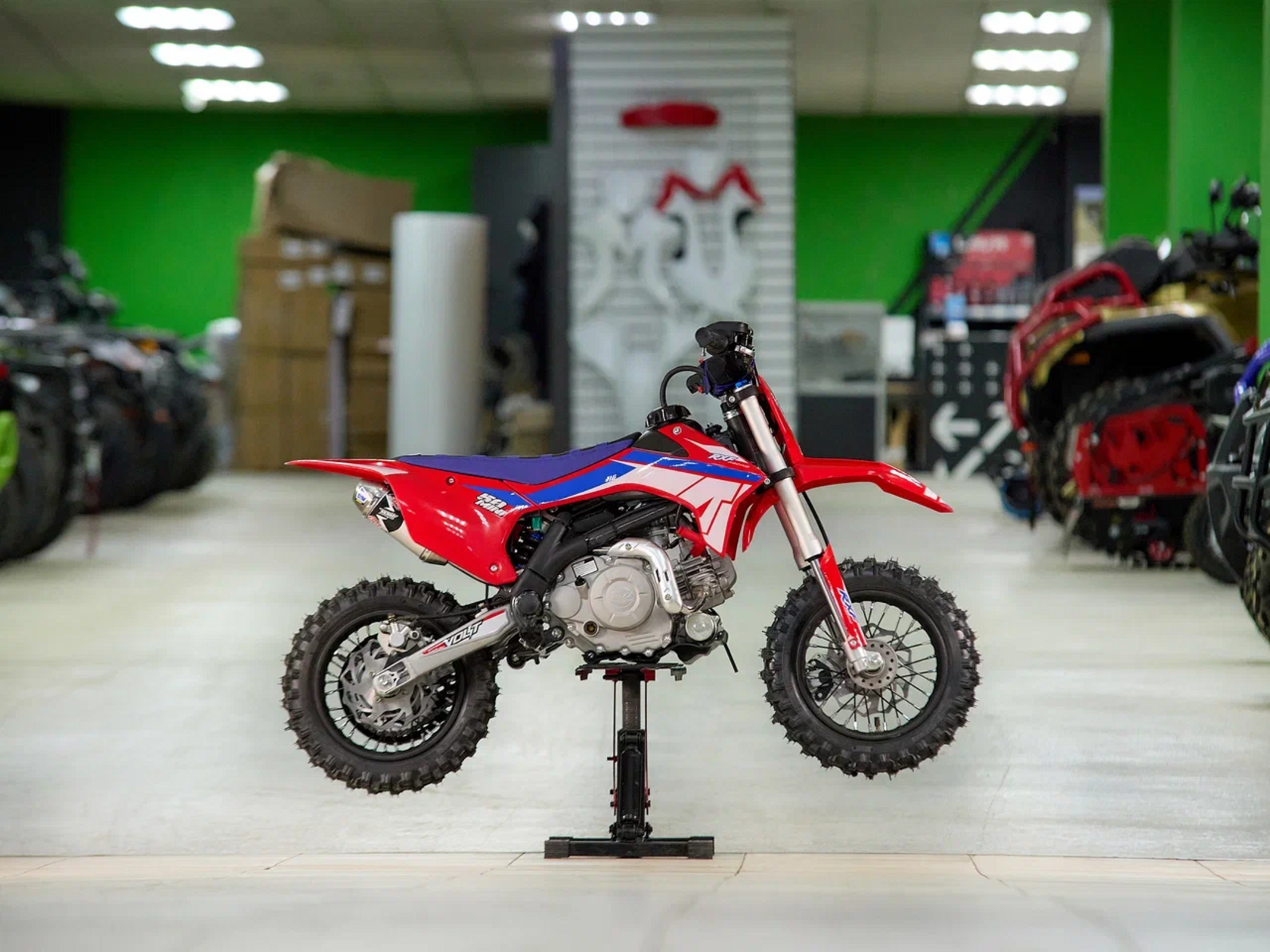 Питбайк Apollo TRACKER 125LE 14/12 Красно-голубой (фара, электростартер) pitbikemarket.ru