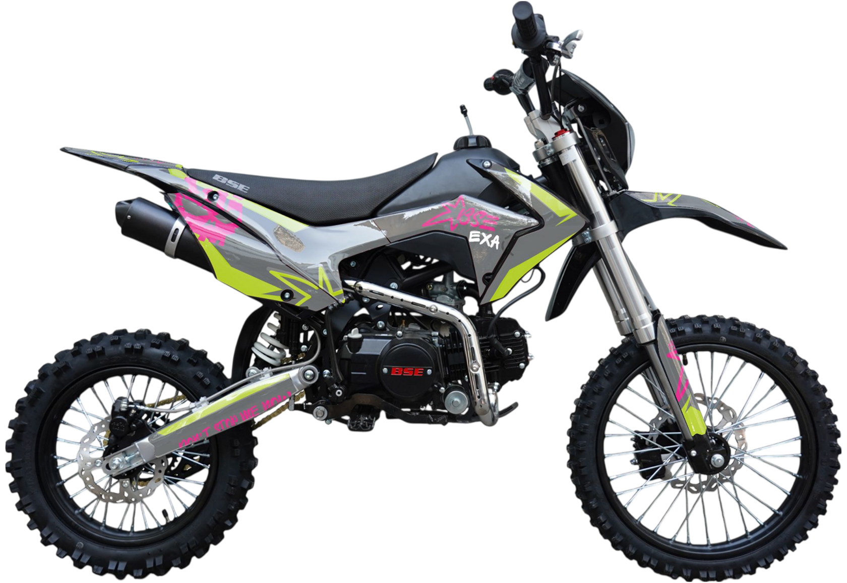 Почему BSE EXA – лучший выбор? Легкий и управляемый – высота седла 810 мм подойдет даже новичкам. Полуавтомат – не нужно выжимать сцепление, просто крути газ и лови драйв! Прочная конструкция – готов к прыжкам, трюкам и бездорожью. Яркий дизайн – выглядит круто и привлекает внимание. BSE EXA – не просто питбайк, а источник настоящих эмоций! Вы готовы к приключениям? Тогда BSE EXA – ваш идеальный выбор!