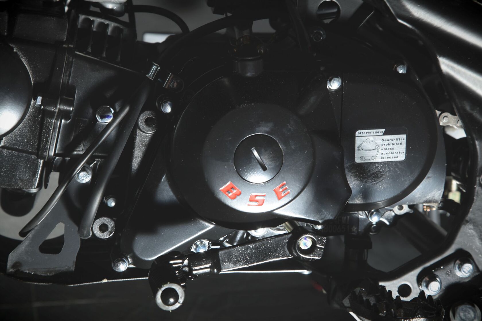 Питбайк BSE PH125 на колесах 17/14 дюймов – один из самых популярных, надежных и продаваемых питбайков 125 куб см среди китайских производителей! Этот классический питбайк объёмом 125 см3 обладает рядом модификаций и полезных усовершенствований, которые дополняют его функционал и отличают от конкурентов. PH125 оснащен колесами классическим для питбайка размером колес 17/14. Основа PH125 - рама из хромомолибденовой стали повышенной жесткости с литыми усилителями - фирменный знак качества завода BOSUER! Cиловая установка питбайка – надежный, тяговитый и мощный 4-тактный двигатель Zonghshen 125 куб см с воздушным охлаждением и мощностью 10 лс. Питает мотор карбюратор Jingke PZ 26. Питбайк оснащен 4-ступенчатой механической трансмиссией. Запуск мотора осуществляется при помощи электростартера или кик-стартера. Подвески с большими ходами: передняя - телескопическая вилка перевёрнуто типа, задняя- моноамортизатор. "Злая" резина, Мощная тормозная система HSK Racing, японские колесные подшипники NTN, усиленная цепь 428 Gold, защита мотора - питбайк полностью укомплектован всем необходимым для покатушек и гонок.