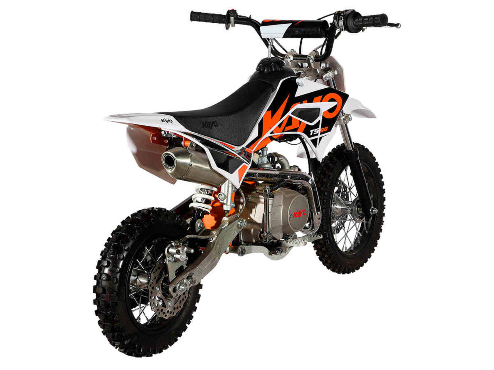 Питбайк KAYO Mini TS90 12/10 2022 года – идеальный снаряд для юных экстремалов, который можно использовать на лёгких кроссовых трассах и дорогах с различным покрытием. Удобный, простой и надёжный мотоцикл, который полностью оправдывает свою цену.Одноцилиндровый 4-тактный двигатель воздушного охлаждения ZONGSHEN YX147FMF объёмом 88 см3, выдаёт 5,5 л.с. Карбюратор JK PZ19 обеспечивает бесперебойную работу техники в самых жёстких условиях эксплуатации, простоту и лёгкость в обслуживании, а также неприхотливость к качеству топлива. Мотоцикл оснащён полуавтоматической 4-ступенчатой коробкой передач с формулой “N-1-2-3-4”. Запуск двигателя осуществляется с помощью кнопки на руле или рычага кикстартера.Мотоцикл имеет вес всего 60 кг. Усиленная рама из хром-молибденового сплава и подвеска позволяют эффективно амортизировать удары при езде по неровностям и препятствиям на трассе.Передняя подвеска – телескопическая вилка длиной 540 мм, задняя – моноамортизатор 270 мм. Рама и пластик являются собственной разработкой производителя. Мотоцикл оснащён классическими стальными спицованными колёсами диаметром 10 и 12 дюймов. Эффективное и безопасное замедление с любых скоростей обеспечивают гидравлические дисковые тормоза. Высококачественная износостойкая резина с развитым протектором отлично держит дорогу на различных типах покрытия.Если вы ищете послушный, компактный, динамичный и красивый питбайк для своего малыша, считайте, что вы его нашли.