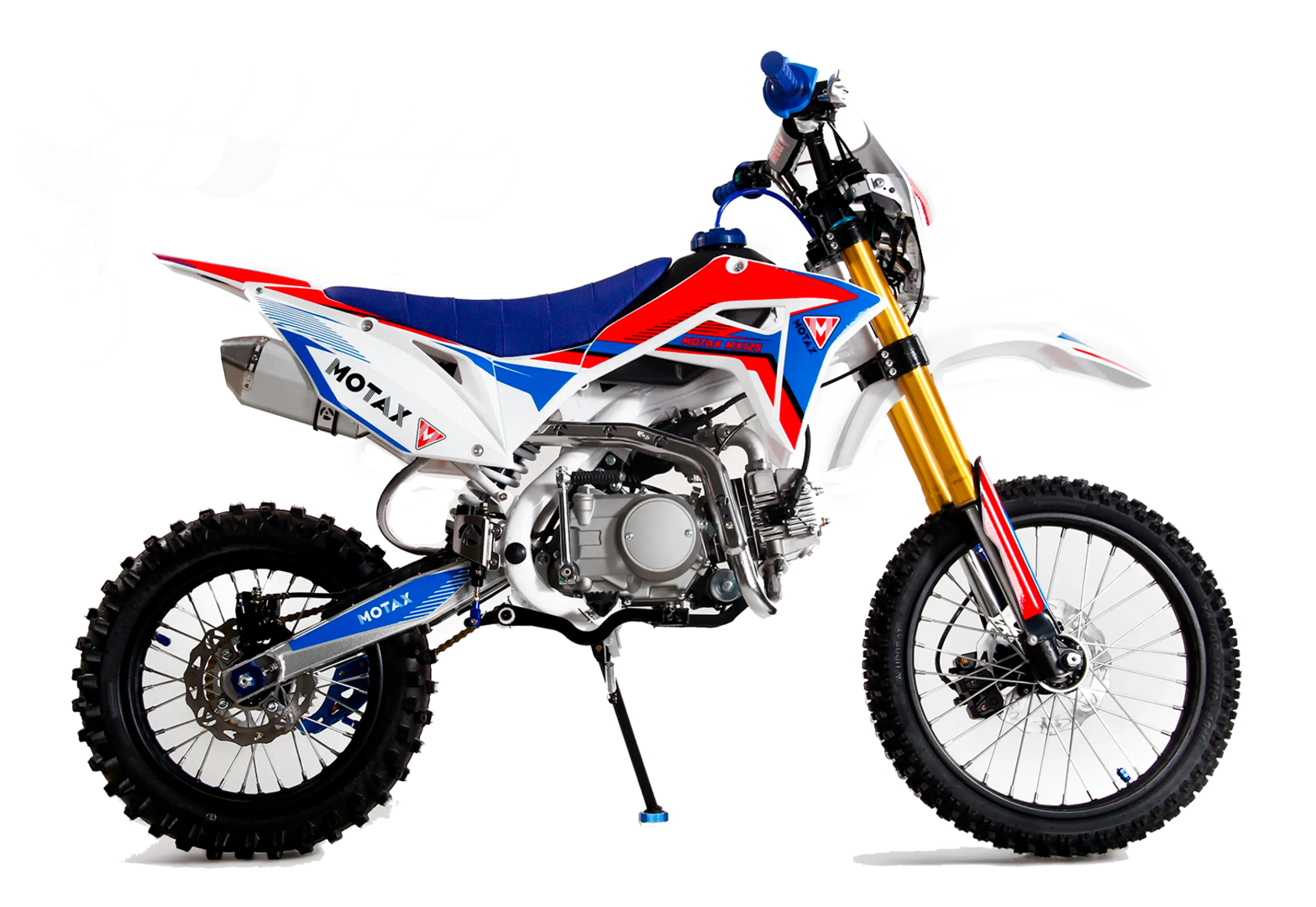 Питбайк MOTAX MX 125cc оснащен четырехтактным бензиновым двигателем 1P53FMI с верхним распределительным валом и воздушным охлаждением, имеющим два клапана на цилиндр, что обеспечивает стабильную работу и длительный срок службыЗапуск двигателя возможен с помощью электрического стартера и ножного стартера. Максимальная мощность двигателя составляет 8,5 лошадиных сил, что позволяет развивать скорость до 85 км/ч. Четырехступенчатая трансмиссия (N-1-2-3-4) позволяет гибко управлять скоростью и мощностью, что удобно для разных условий езды. Гидравлические дисковые тормоза установлены как на переднем, так и на заднем колесах. Подвеска нерегулируемая 45-48/735 (33). Покрышки передние 70/100-17 и задние 90/100-14. Объем топливного бака – 4 литра. Объем масла в двигателе – 0,8 литра.