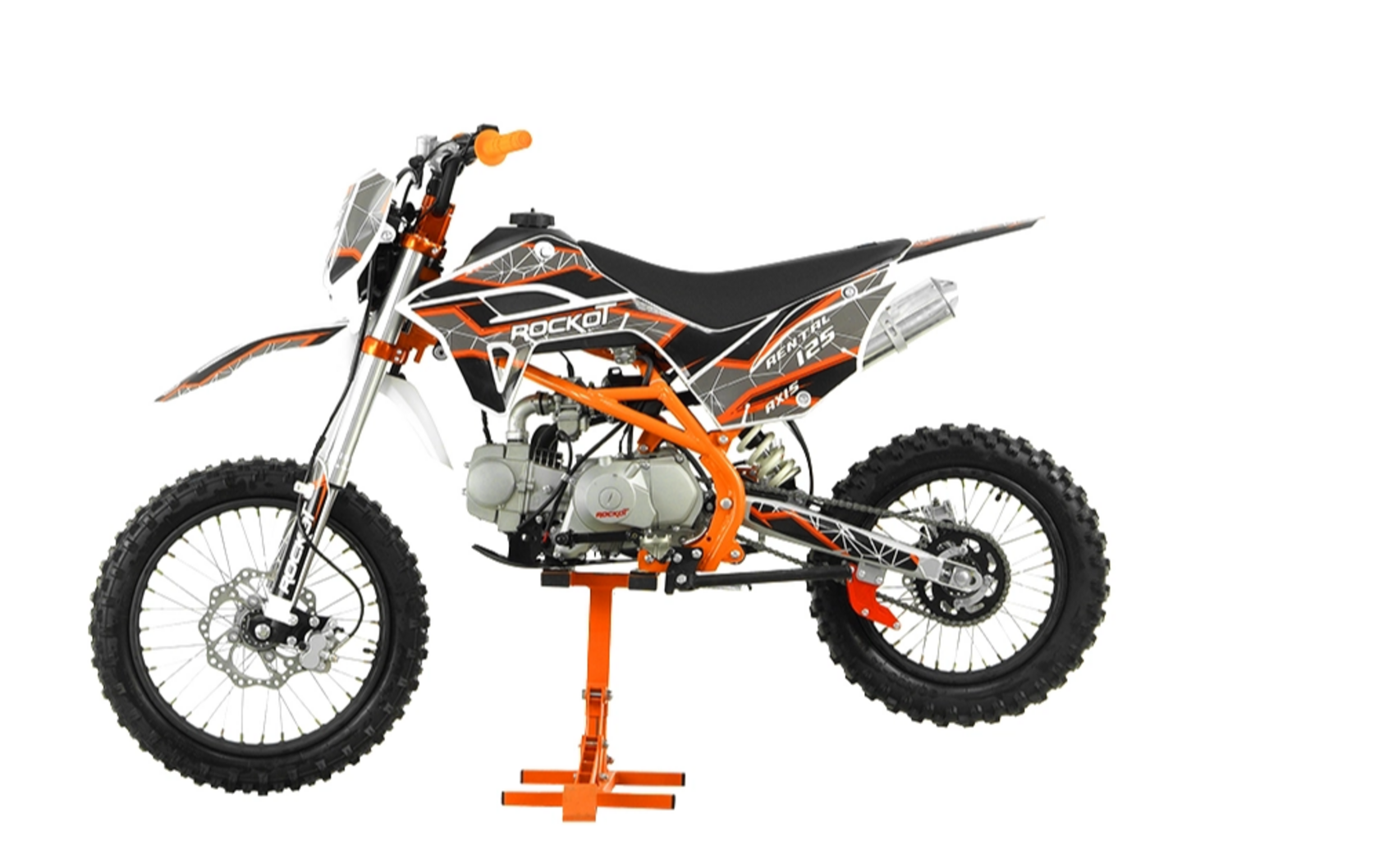 ROCKOT RENTAL 125 Axis 2.0 - питбайк созданный для начинающих райдеров, но имеющий при этом достаточно хорошую комплектацию. Колесная база питбайка равна 1220 мм и высоте по седлу - 850 мм, что подойдет для детей и взрослых, ростом от 150 см.В отличии от многих питбайков, здесь установлены двухпоршневые тормозные суппорты и спереди и сзади. Тормозные диски увеличенного радиуса 220 мм спереди и 190 мм сзади. Задняя тормозная машинка защищена специальной металлической пластиной, что позволит уберечь ее от повреждения при боковых ударах и падениях питбайка.Питбайк ROCKOT RENTAL 125 Axis оснащен усиленной цепью KMC 428H GOLD (золотая), не уступающая по качеству японским цепям фирмы DID. Приводная ведомая звезда на 41 зуб, произведенная из стали, что положительно сказывается на ресурсе данного узла.Питбайк ROCKOT RENTAL 125 Axis, благодаря своим положительным качествам, а именно: малый вес, небольшая высота по седлу, надежный двигатель с полуавтоматической трансмиссией – заслужил большую популярность среди новичков. Также, выгодно отличает его от других питбайков – хорошая комплектация с большим количеством предустановленных тюнинг элементов.