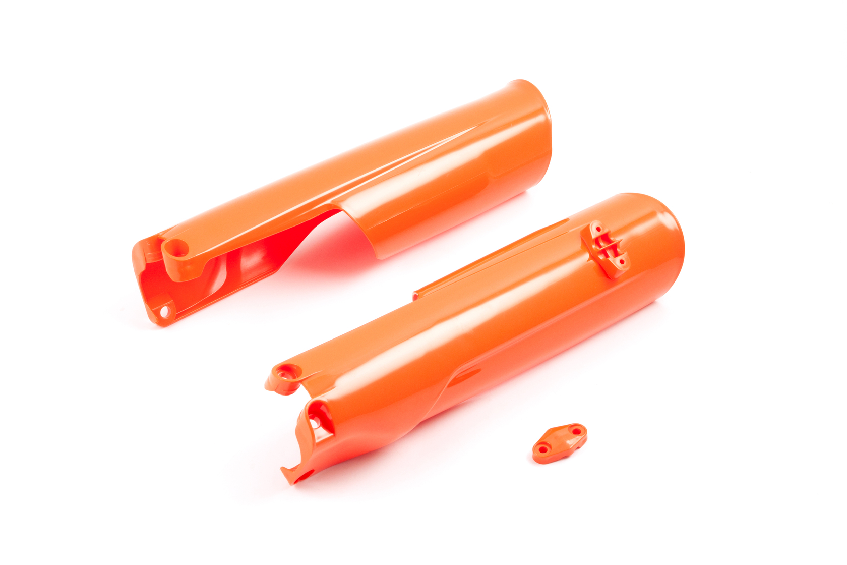 Защита перьев вилки оранжевого цвета для мотоциклов BRZ SX8. Предназначена для вилок диаметром 48 мм различных производителей (HT, WP, MNT). Выполнена из ударопрочного пластика. Является полным аналогом оригинальной детали KTM с артикулом A46001094000C1. Обеспечивает надежную защиту перьев вилки от механических повреждений, грязи и абразивного износа. Прямая установка без доработок.