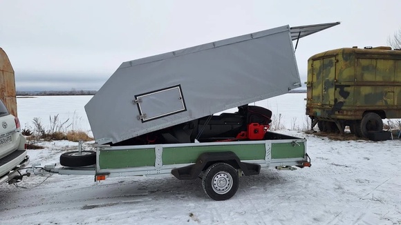 Прицеп VOYAGE Classic 3,0 Бортовой, с тентованным подъемным каркасом, окнами и задней дверью (ш. 1,65; д. 3,0)
