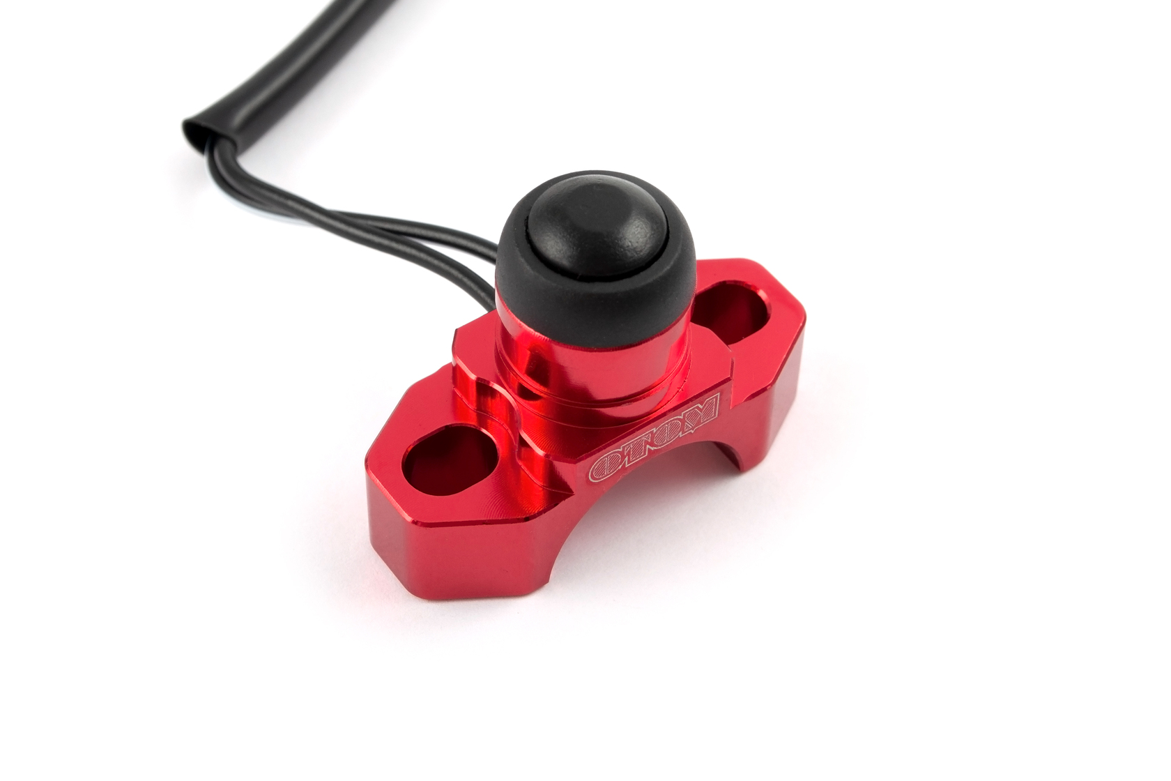 Универсальная кнопка запуска и остановки двигателя OTOM красного цвета. Выполняет функции включения или выключения двигателя в зависимости от схемы подключения. Корпус изготовлен из CNC алюминия, обеспечивает надежную влагозащиту. Стандартное крепление двумя болтами вместо штатного рычага сцепления или тормозной машинки. Подходит для установки как с левой, так и с правой стороны руля.