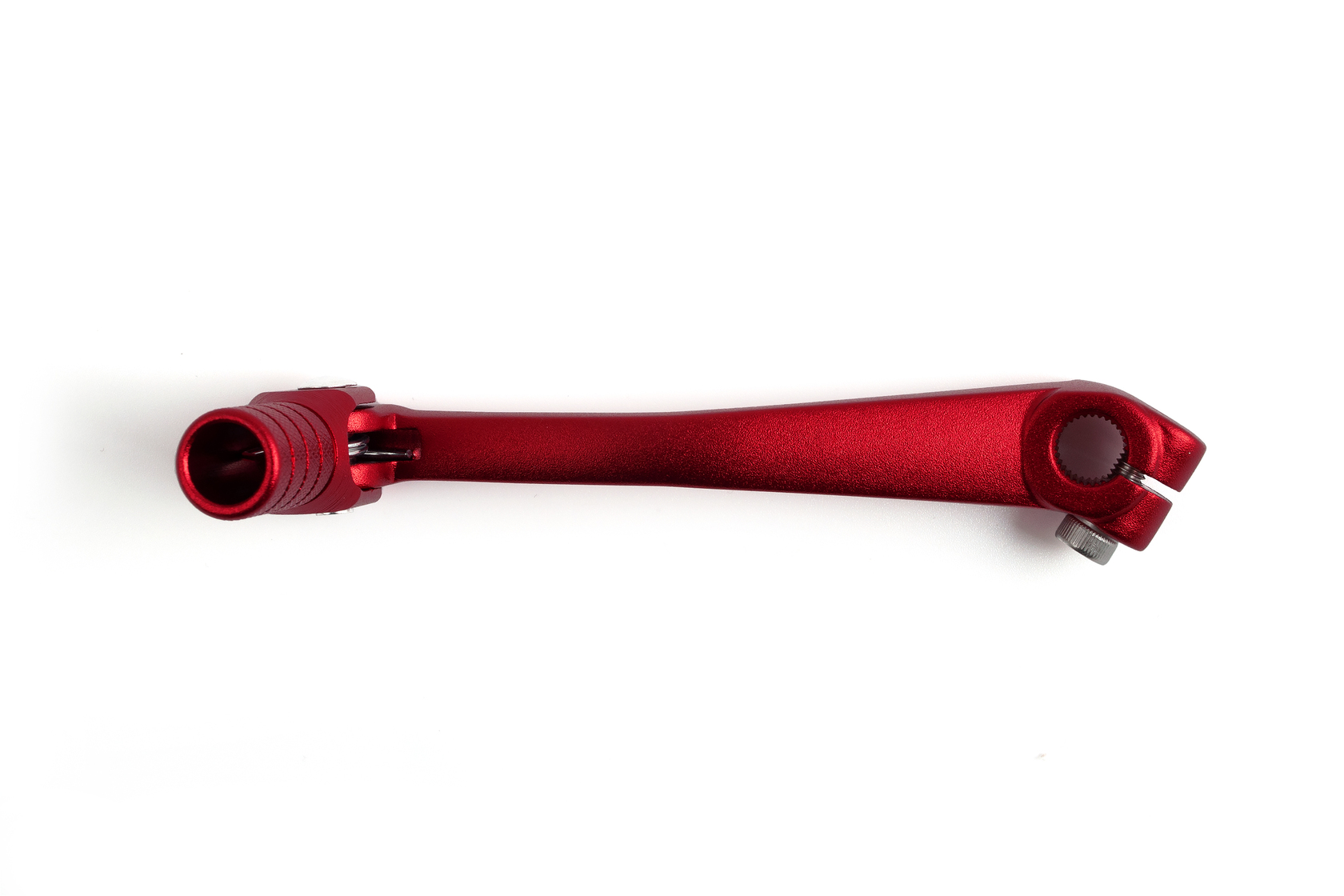 • Алюминиевый рычаг переключения передач для питбайков и мопедов. Лёгкая и прочная конструкция обеспечивает надёжную и чёткую работу КПП, а анодированное красное покрытие придаёт стильный внешний вид.