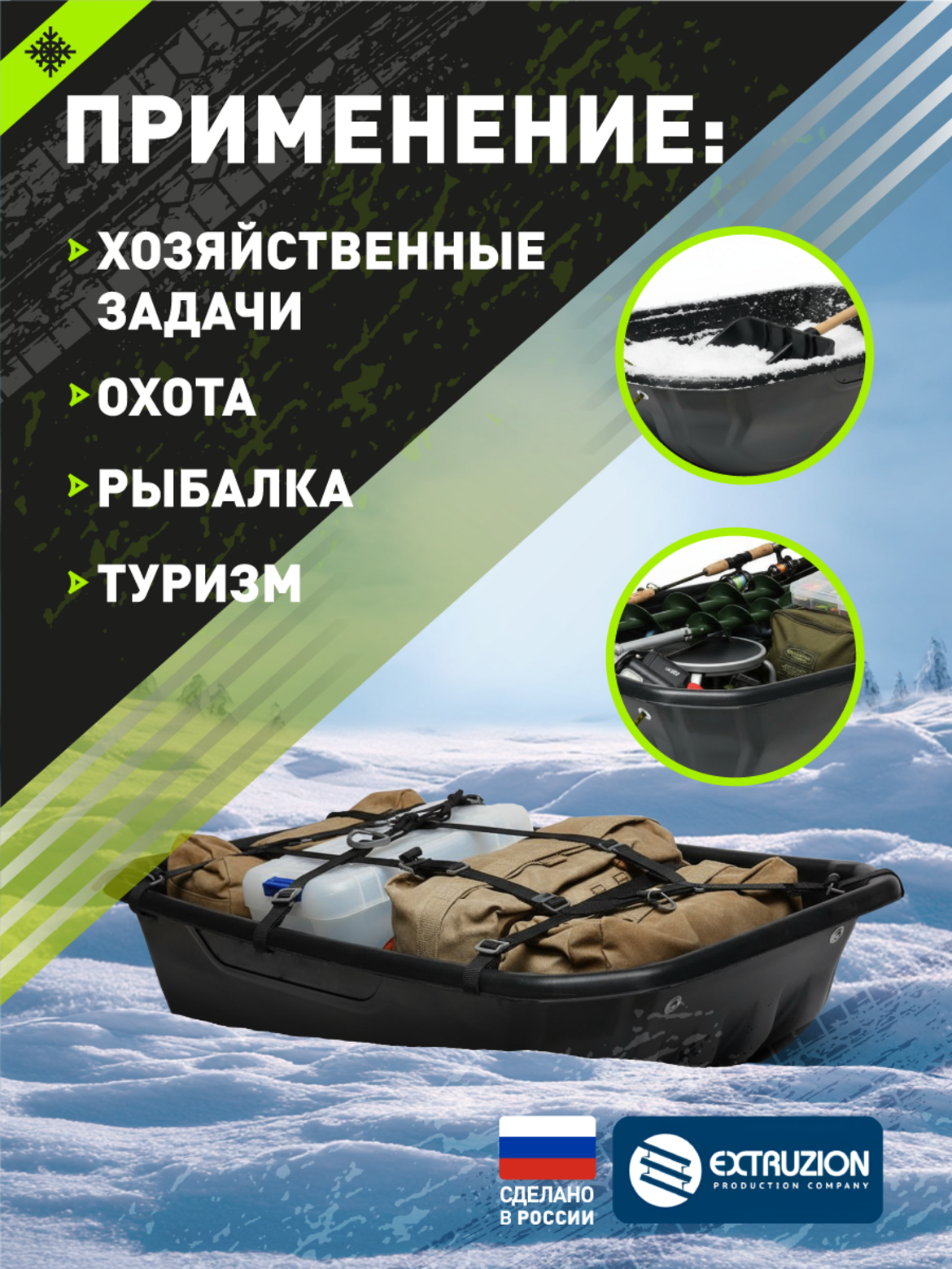 • Профессиональное решение для многодневных зимних экспедиций. Созданы для перевозки грузов в условиях полного бездорожья, где не пройдет техника.