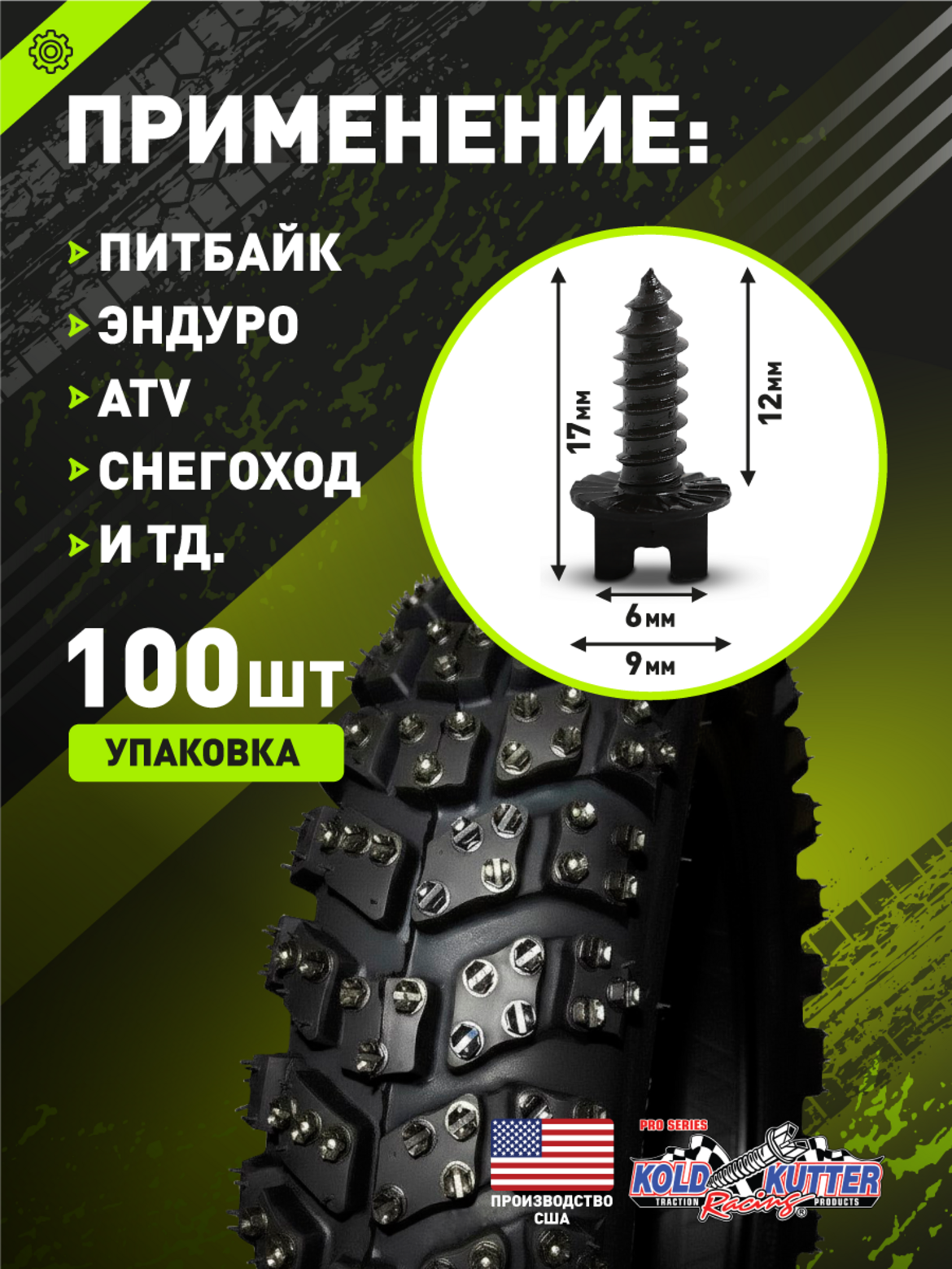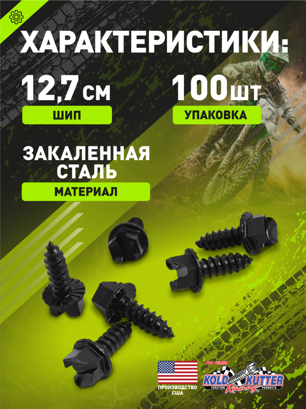 Шип для эндуро мотоцикла вкручивающийся 100 шт.KOLD KUTTER 1/2" (12 мм) M8
