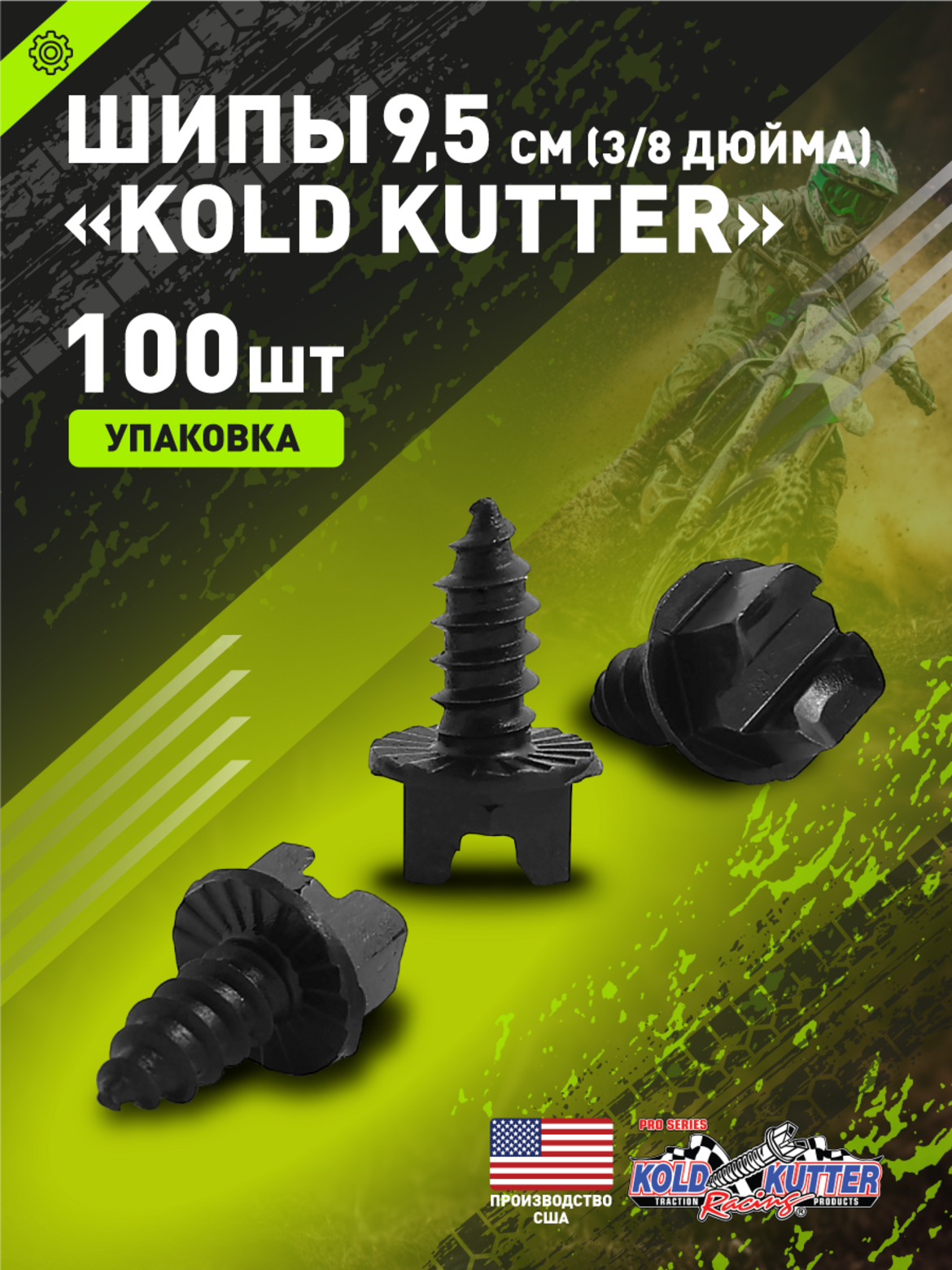 • Шип для эндуро мотоцикла вкручивающийся 100 шт. KOLD KUTTER 3/8" (9,5 мм)