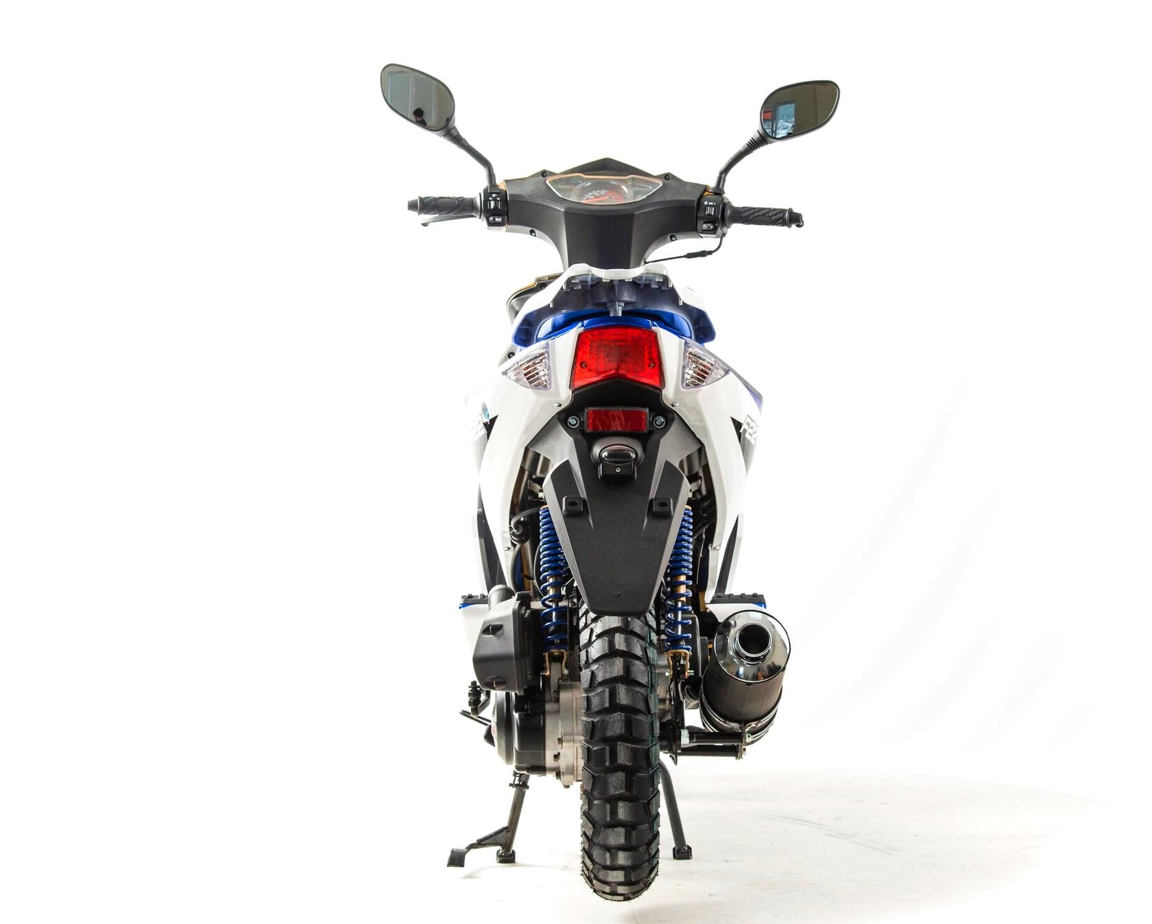 Комплектация Зеркала заднего вида, багажник, центральная подножка, дисковые передние и барабанные задние тормоза.