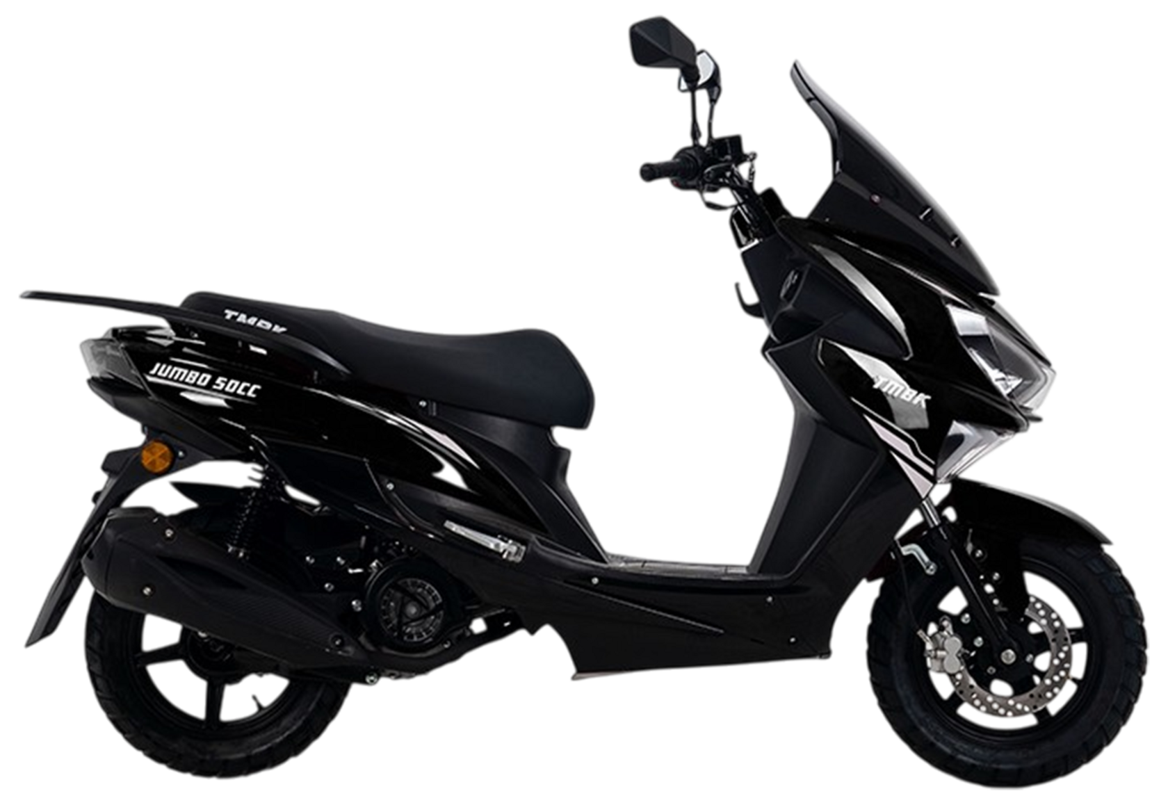 TMBK JUMBO — Ваш идеальный спутник для городаДля всех, кто ищет транспортное средство, сочетающее стиль, комфорт и практичность, мы представляем скутер TMBK JUMBO. Он станет вашим надёжным партнёром на городских дорогах, превращающая каждую поездку в настоящее удовольствие.Мощность и экономичностьСердцем TMBK JUMBO является современный 4-тактный двигатель, который дарит идеальный баланс между высокой производительностью и низким расходом топлива. Уверенное ускорение и плавный ход позволят легко справляться с любыми дорожными ситуациями, даже в условиях плотного городского трафика.Комфорт в каждой деталиЕго эргономичное сиденье с мягкой обивкой и высокое ветровое стекло обеспечат максимальный комфорт в любую погоду. Ваша спина и руки не устанут даже после долгих поездок, а защита от ветра и осадков сделает вождение приятным в любое время года.Практичность, которая вдохновляетБольше не нужно выбирать между комфортом и функциональностью. Вместительный багажный отсек легко вмещает шлем-интеграл и другие необходимые вещи, сохраняя их в полной безопасности. Площадка под кофр открывает возможности для перевозки дополнительного багажа. А дорожный просвет 160 мм позволяет уверенно преодолевать препятствия, не беспокоясь о повреждении корпуса.Современный стильTMBK JUMBO — это не просто скутер, а отражение вашего характера: элегантные линии, продуманный дизайн и яркая светодиодная оптика.Экологичность нового поколенияСкутер соответствует самым строгим экологическим стандартам, что делает его идеальным выбором для тех, кто заботится об окружающей среде.Ваш надежный партнер на дорогеTMBK JUMBO — это сочетание стиля, комфорта и надёжности. Он станет вашим верным спутником в любой ситуации, будь то поездка на работу, прогулка по городу или путешествие за пределы мегаполиса.