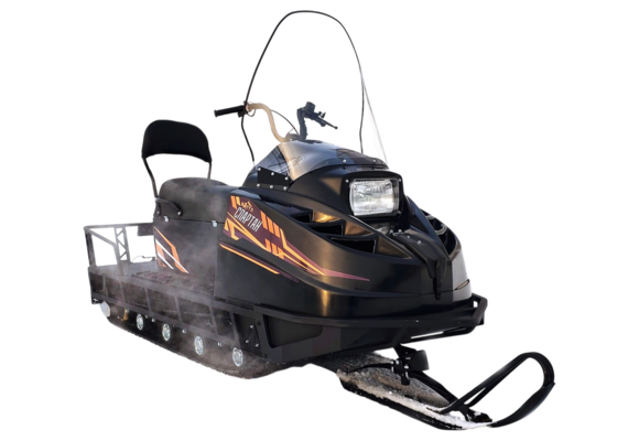 Снегоход TERRATRACK СПАРТАН Классика PRO — это полноценное воплощение утилитарного снегохода нового поколения, созданного для самых требовательных условий эксплуатации. Он разработан для охотников, рыболовов, любителей активного отдыха и всех, кто нуждается в надёжной технике для передвижения по заснеженным и труднопроходимым местностям. Модель сочетает в себе проверенные решения классической серии Spartan и современные технические усовершенствования, которые повышают её функциональность, комфорт и безопасность.Снегоход оснащён двухцилиндровым 4-тактным двигателем мощностью 30 л.с., который обеспечивает уверенное ускорение и стабильное движение даже по глубокому снегу. Передача усилия осуществляется через кулачковую коробку передач с возможностью выбора передаточного отношения, что позволяет адаптировать снегоход под различные условия: от быстрой езды по ровной поверхности до медленного и уверенного продвижения по глубокому снегу или крутым подъёмам. Механизм переключения отличается простотой, надёжностью и минимальными требованиями к обслуживанию.Особое внимание разработчики уделили подвеске и проходимости. Передняя подвеска выполнена по схеме эллиптической рессоры с дополнительной пружиной сжатия и ходом 50 мм, что обеспечивает плавный ход и снижает отдачу при преодолении неровностей. Задняя подвеска пружинно-балансирная с таким же ходом, что позволяет снегоходу сохранять стабильность даже при большой загрузке. Гусеница Полярник шириной 22 мм гарантирует отличное сцепление с поверхностью, высокий уровень проходимости и манёвренность.Рама снегохода выполнена из усиленной стали толщиной 1,5 мм с дополнительными усилителями в местах подножек, что делает конструкцию долговечной и устойчивой к экстремальным нагрузкам. Высокое сиденье обеспечивает удобную посадку и просторное место для хранения вещей в бардачке. Эргономика руля и расположение органов управления продуманы так, чтобы водитель мог длительное время управлять снегоходом без усталости.Модель Классика PRO также отличается развитой электрикой: фары дальний и ближний свет от грузовиков МАЗ-КАМАЗ обеспечивают отличную видимость, нагреватели ручек и курка газа повышают комфорт управления в мороз, аккумулятор ёмкостью 45–50 Ач гарантирует надёжный запуск и работу всех электрических систем, а генератор мощностью 240 Вт поддерживает стабильное питание.Габариты снегохода делают его удобным для маневрирования и транспортировки: длина 3055 мм, ширина 910 мм, высота по стеклу 1480 мм, транспортировочная высота с сложенным рулём и спинкой сиденья 1020 мм. Конструкционная масса составляет 313 кг, снаряжённая — 369 кг, полная — 569 кг. Максимальная скорость достигает 65 км/ч, а радиус поворота — 6000 мм, что обеспечивает отличную управляемость даже на ограниченных пространствах.Особенности модели PRO делают её уникальной на рынке: широкая и удлинённая лыжа 300 мм с подогнутой задней пяткой повышает устойчивость и манёвренность, система предотвращения опрокидывания тележек обеспечивает безопасность при резких манёврах, морозостойкий аккумулятор и тихий глушитель увеличивают комфорт эксплуатации в любых погодных условиях, а двухцветная покраска и чёрный капот подчёркивают современный и стильный внешний вид.TERRATRACK СПАРТАН Классика PRO — это не просто снегоход, это надёжный