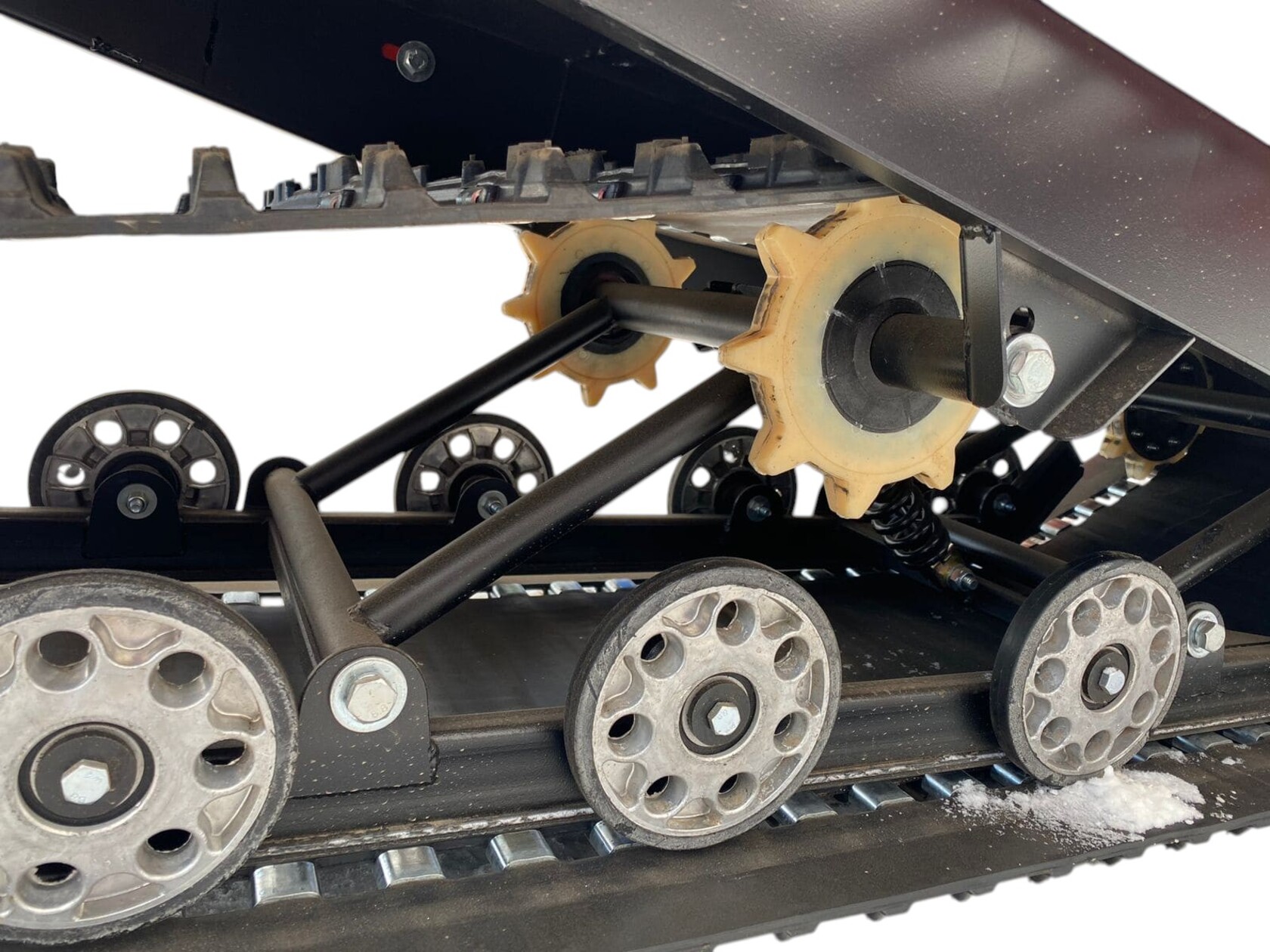 Флагманская новинка зимы 2023 «Бурлак Беркут CS» на склизовой подвеске.Ключевые особенности «Бурлак Беркут CS»:стильный дизайн,горизонтальное подмоторное основание,обновленный узел натяжки цепи, исключающий ее проскальзывание,электропроводка в гофротрубе, блок предохранителя,усовершенствованный конструктив передней подвески,металлическая защита рулевых тяг.В комплектацию входят:двигатель 20, 24 или 27 л.с. с передним расположением,гусеница LONG шириной 500 мм,склизовая подвеска,вариатор "Сафари",электричский запуск,гидравлический тормоз,реверс,2 металлические опорно-поворотные лыжи,спидометр, тахометр,2 основные фары, стоп-сигнал,прикуриватель,зеркала заднего вида.