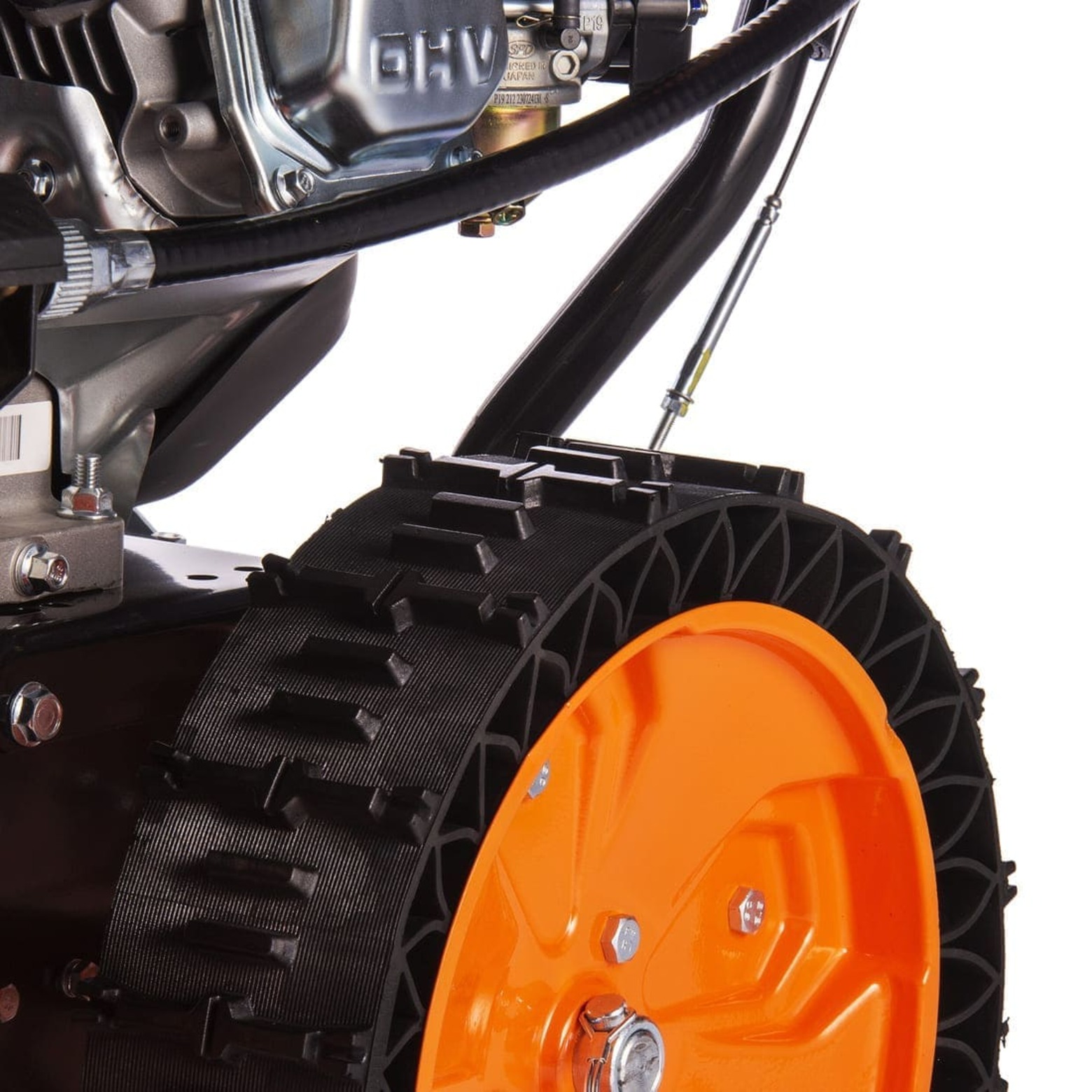 Снегоуборочная машина Kettama 80S Superior представляет собой «младшую» модель линейки Superior. Однако она также обладает всеми её основными преимуществами. Снегоуборщики линейки Superior, выпускаемые компанией Kettama, представляет собой класс полупрофессиональной техники. Основными отличиями от класса бытовой техники являются повышенная производительность и рабочая ресурсность.На Kettama 80S установлены безвоздушные шины SnowLink с технологией Runflat. Эти шины с глубоким протектором исключают пробуксовку агрегата на обледенелом участке. Увеличенное сцепление даёт возможность достичь показателей производительности практически равных гусеничному шасси. При этом, более низкий общий вес снегоуборщика позволяет достигать на этой модели показателей производительности до 5 т/ч со снегом плотностью до 500 кг/м3 (сброшенный с крыш). На свежевыпавшем влажном снегу плотностью до 200-230 кг/м3 этот снегоуборщик способен достигать производительности до 15 т/ч. Шины позволяют достигать высокого сцепления и повышенной производительности даже во время поворотов.Возможность эффективно перерабатывать снег разных типов сложности связана с конструкторским решением сочетания высокой мощности (8,5 л. с.), небольшой ширины уборки (660 мм) и усиленным сцеплением 14-дюймовых безвоздушных шин Runflat. Небольшая ширина ковша даёт возможность эксплуатировать технику на любом приусадебном участке с узкими дорожками. Повышенная высота ковша даёт возможность применения этой техники при работе с более высоким снегом. Однако это же создаёт определённые ограничения в работе с лежалым снегом с элементами сухого фирна. Дефлектор из усиленного металла позволяет менять направление выброса снега на 190 градусов при помощи рукоятки на корпусе машины. Стальной шнек с добавлением хромомолибденового сплава позволяет эффективно справляться даже со слежавшимся снегом.Скорость уборки: 6 передач вперёд и 2 назад, что позволяет выбрать оптимальный режим работы в зависимости от сложности задачи и типа снега. Металлическая рама с добавлением холодостойкого нихрома обеспечивает долговечность конструкции и возможность работать даже при экстремально низких температурах. Снегоуборщики Kettama. Наша техника станет для вас отличным подспорьем в уборке льда. Надёжный и стабильный двигатель с длительной гарантией, обеспечиваемой опытными специалистами, всегда вас выручит в момент нужды и избавит от лишней мороки. При этом нашим инженерам удалось добиться достойного соотношения качества к цене. Это позволит облегчить жизнь Вам и Вашей семье, не получив серьёзного урона по кошельку.Снегоуборщики Kettama являются одними из самых передовых и технологичных на российском рынке. Несмотря на свой привлекательный внешний вид, дизайн предельно прост и функционален, что повышает надёжность техники, исключая случайные поломки и снижая частоту обслуживания даже при регулярном использовании. Специально разработанные шнеки-ледорубы с агрессивным строением лезвий позволяет избавляться от любого, даже замёрзшего снега, и даже льда. Благодаря им Вы просто не будете знать, что есть непреодолимые препятствия. Специально разработанная система направляющих механизмов позволяют регулировать наклон и положение ковша, давая возможность адаптировать механизм под любые ситуации. Проверенные временем и сотнями ты