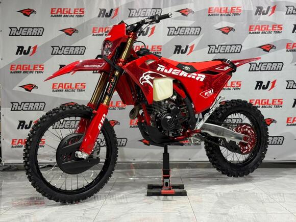 Мотоцикл AJERRA SAGAI A10 YB300H — это современный эндуро-байк, сочетающий в себе надёжность, мощь и управляемость, созданный специально для тех, кто ценит уверенность на трассе и бездорожье. Построенный на прочной раме AJ1 К10 — копии легендарного KTM 2024 года, он демонстрирует высочайший уровень прочности и устойчивости при активных нагрузках. В сердце мотоцикла установлен проверенный временем двигатель Loncin YB300H 176 FMN с воздушным охлаждением. Мотор отличается стабильной тягой, простотой обслуживания и долговечностью, что делает его идеальным выбором как для тренировок, так и для любителей активных покатушек по пересечённой местности. В паре с надёжным карбюратором Nibbi Racing PWK 34 Black он обеспечивает точную подачу топлива и отзывчивость на газ. Подвеска здесь не уступает по качеству — передняя вилка HTW SCC 930 мм с одним картриджем и задний амортизатор HTW 2450 с прогрессией эффективно отрабатывают кочки и препятствия, обеспечивая максимальный комфорт и контроль в движении. Фрезерованные траверсы AJ1 2024 и алюминиевый маятник добавляют лёгкости и прочности конструкции, а система тормозов AJ1 с дисками на обеих осях гарантирует стабильное торможение даже в экстремальных условиях. Детали выполнены с вниманием к каждой мелочи: усиленный руль AL7075, алюминиевые подножки AJ1 2024 (копия S3), надёжная цепь KMC 520 Pro, эргономичные грипсы Lock ON и ручка газа Nibbi. Светодиодная оптика 2 EYE LED Generation 4 (50W) обеспечивает отличную видимость даже ночью. Алюминиевые обода UNISON 7116 и фрезерованные ступицы придают мотоциклу дополнительную прочность, а внедорожные покрышки Cordinal 80/100-21 и 120/90-18 обеспечивают уверенное сцепление с любой поверхностью. Комфорт и надёжность дополнены практичными элементами: счётчик моточасов, защита мотора и рамы, стропы для фиксации, заглушки руля и сиденье AntiSkid. Вся электрика работает от аккумулятора Skyrich Li-Ion, что гарантирует стабильный запуск и работу систем. Высота по седлу — 940 мм, что делает мотоцикл удобным для райдеров среднего и высокого роста. AJERRA SAGAI A10 YB300H — это мощный и сбалансированный эндуро-мотоцикл для тех, кто ищет универсальность и готовность к любым условиям. Он подойдёт как для тренировок и участия в любительских соревнованиях, так и для активного отдыха.