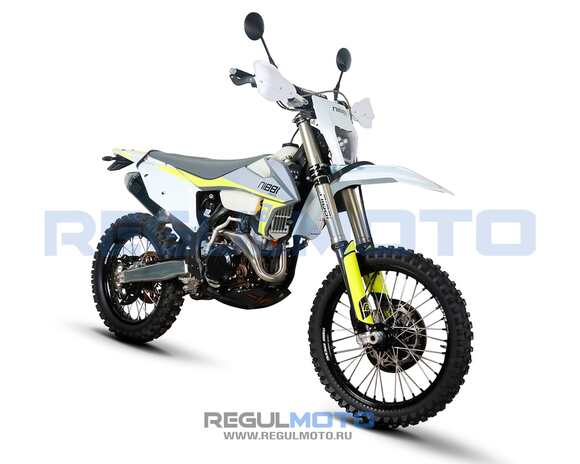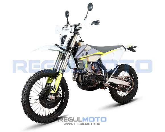 Мотоцикл Regulmoto NIBBI 300.Двигатель Zongshen 182FMM, 6 передач, два распредвала. Карбюратор Nibbi FCR39, специально разработанный компанией Nibbi для этого мотоцикла. Мощность двигателя составляет 36л.с. Двухкартриджные передние амортизаторы 48мм, с полной регулировкой и задний от компании NIBBI Racing, доработаны инженерами и гонщиками NibbiRacing (имеющими опыт ралли Париж-Дакар). Влагозащищённые разъёмы электропроводки. Доработаны CDI, реле стартера, регулятор напряжения. Глушитель- NibbiRacing. Траверса фрезерованная - NibbiRacing, Колеса и обода из сплава 7050 от компании GLM - этот завод выпускает ступицы под бендами Talon, обода Excel. Шины - Kenda. Двухсоставная ведомая звезда из сплава 7075 NibbiRacing, Приводная цепь NibbiRacing. Маятник алюминиевый NibbiRacing. Тормозная система - собственная разработка NibbiRacing, Руль из сплава 7075, прогрессия NibbiRacing, фрезерованный рычаг переключения передач, Радиаторы охлаждения увеличенной площади, фрезерованная защита радиаторов, вентилятор охлаждения Panasonic, Новый воздушный фильтр NibbiRacing, который создан из негорючего материала.Складные фрезерованные рычаги тормоза и сцепления. На заводе установлены: защиты рук, защита тормозных дисков, защита картера, защита крышек двигателя, защита маятника, защита рамы, стропы. Складные зеркала, приборная панель, указатели поворота, стоп сигнал, звуковой сигнал.На заводе мотоцикл промазан смазкой Maxima, ГСМ - в амортизаторах, двигателе - Maxima, Антифриз до -60.Каждый мотоцикл проходит проверку качества сотрудниками NibbiRacing!На сегодняшний день это первый мотоцикл из Китая сделанный полностью из топовых комплектующих, доработанный гонщиками команды NibbiRacing и не имеющий аналогов на Российском рынке.