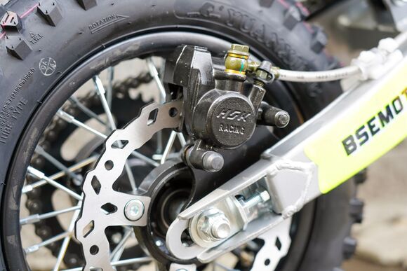 В мире питбайков BSE EVO 110e Twister A 14/12 заслуживает особого внимания. Этот крошечный гигант весит всего 59 кг, но его мотор способен поразить своей мощностью.Прежде всего, давайте заглянем под капот. Сердце этого питбайка - бензиновый 1-цилиндровый двигатель с объемом 110 см³. Модель YX 152 FMH привносит в мир двухколесных приключений 7.1 лошадиных сил. И это не просто цифры - это источник бесконечного веселья на бездорожье.Плавный запуск обеспечивается электростартером, делая каждый выезд моментом наслаждения. А с воздушным охлаждением двигателя можно быть уверенным в стабильной работе мотора даже в самых жарких условиях.BSE EVO 110e Twister A 14/12 готов к любым приключениям, благодаря своей передней подвеске в виде телескопической вилки перевернутого типа и маятниковой задней подвеске. Эти характеристики делают его непревзойденным выбором для тех, кто ищет удовольствие от катания по сложному рельефу.Кроме того, система тормозов с дисковыми механизмами способствует безопасности на дороге. Вы сможете остановиться вовремя даже при самых экстремальных условиях.Бак вмещает 3 литра топлива, что обеспечит вас достаточным запасом на множество захватывающих поездок. А благодаря полуавтоматической трансмиссии переключение передач становится простым и интуитивно понятным процессом.Когда заходит ночь, фары BSE EVO 110e Twister A 14/12 освещают ваш путь, позволяя наслаждаться катанием даже после захода солнца.