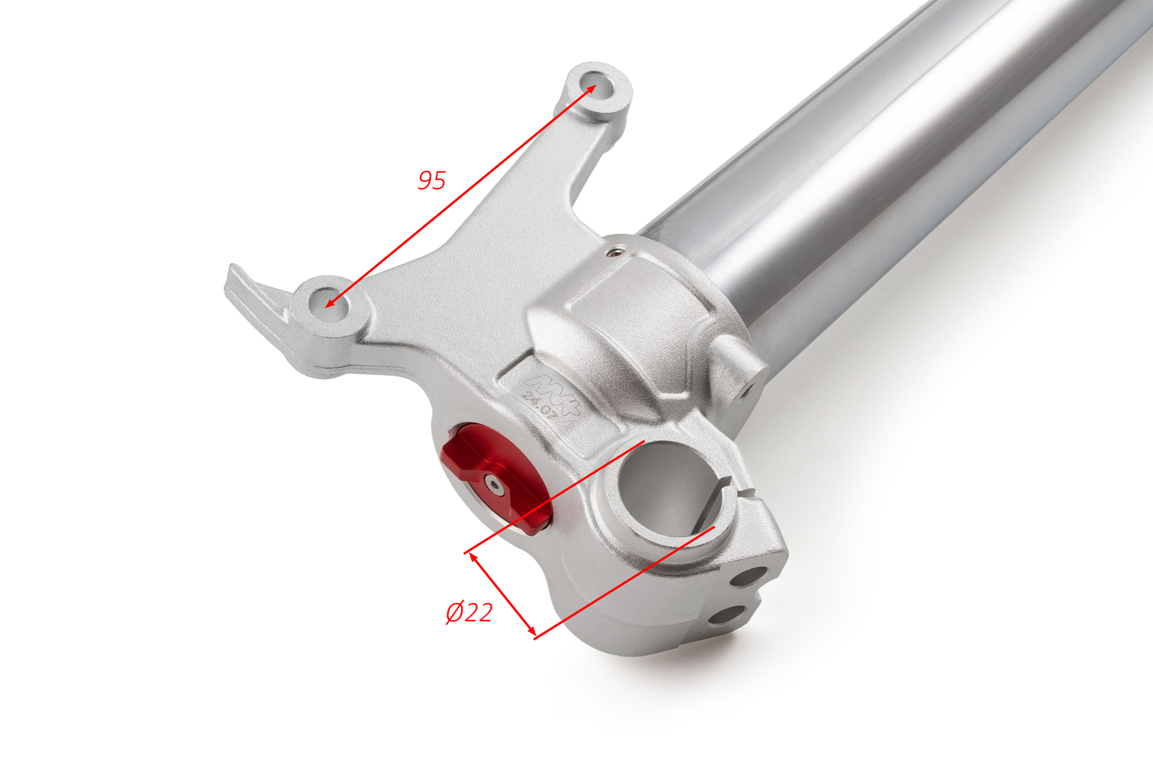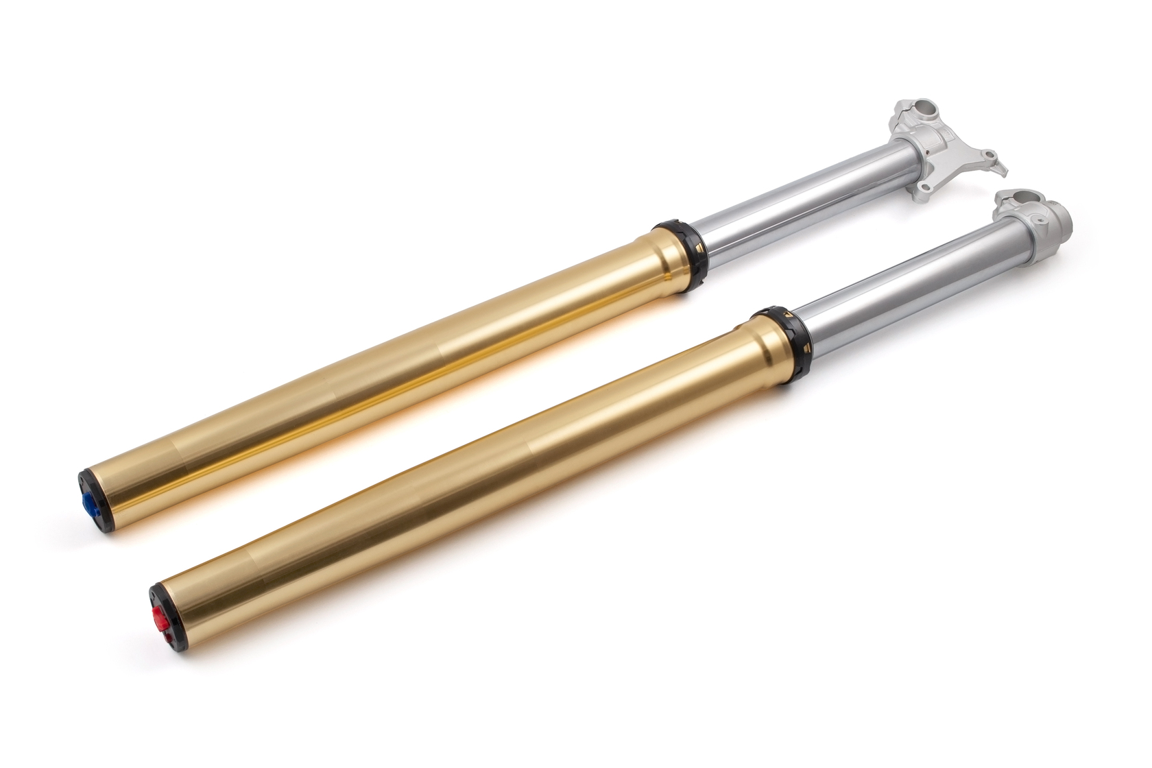 • Перья вилки для полноразмерных эндуро мотоциклов с шасси К8. Длина 910 мм, диаметр пера 48 мм. Однокартриджная конструкция с регулировками сжатия и отбоя. Имеют клапан для сброса воздуха и крепление под суппорт типа KTM. Выполнены в бронзовом цвете.